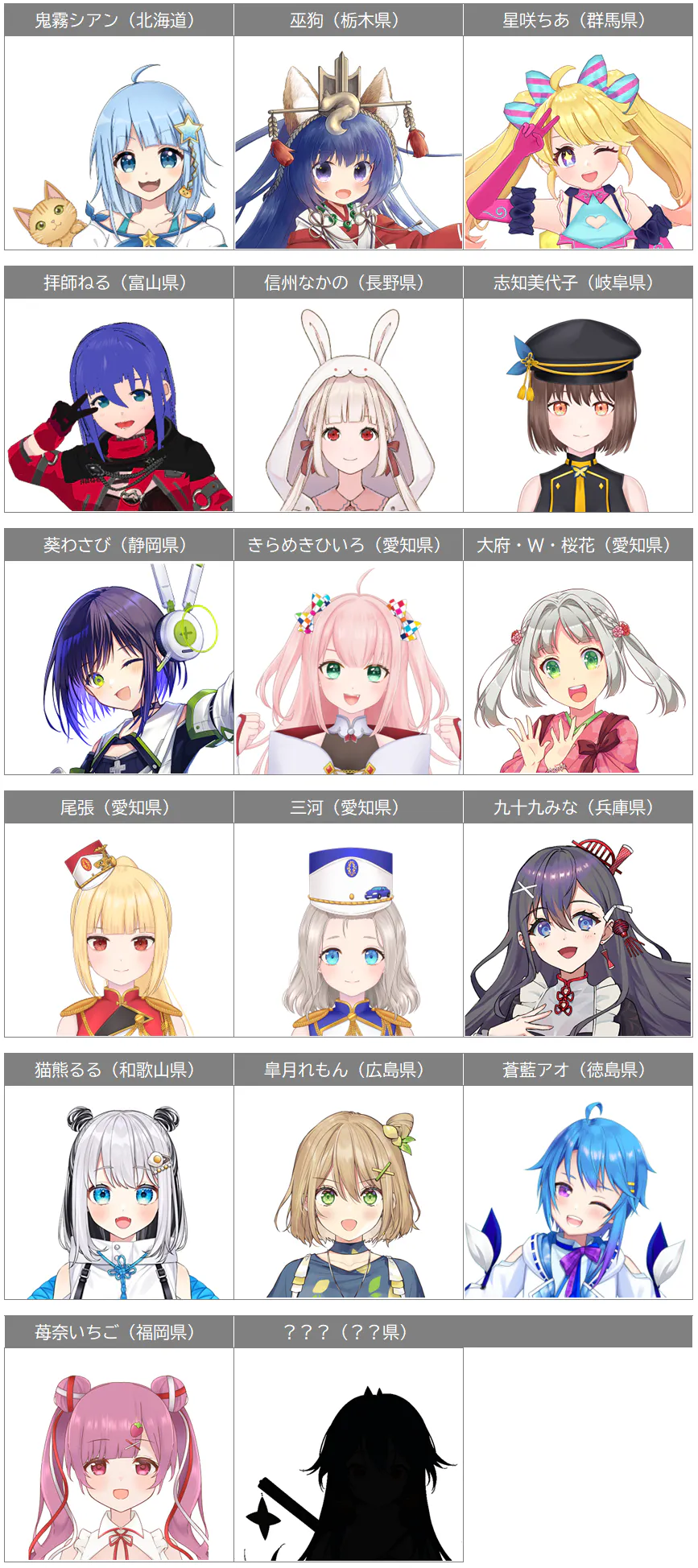今回のイベントには、ふるさとや地元が大好きなVTuberが、全国13の都道府県から16名集まってくれます。