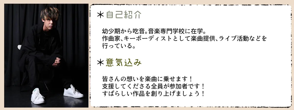※作曲の都合上、長文の場合は短く編集する可能性がありますので予めご了承ください。