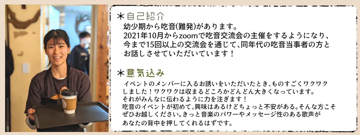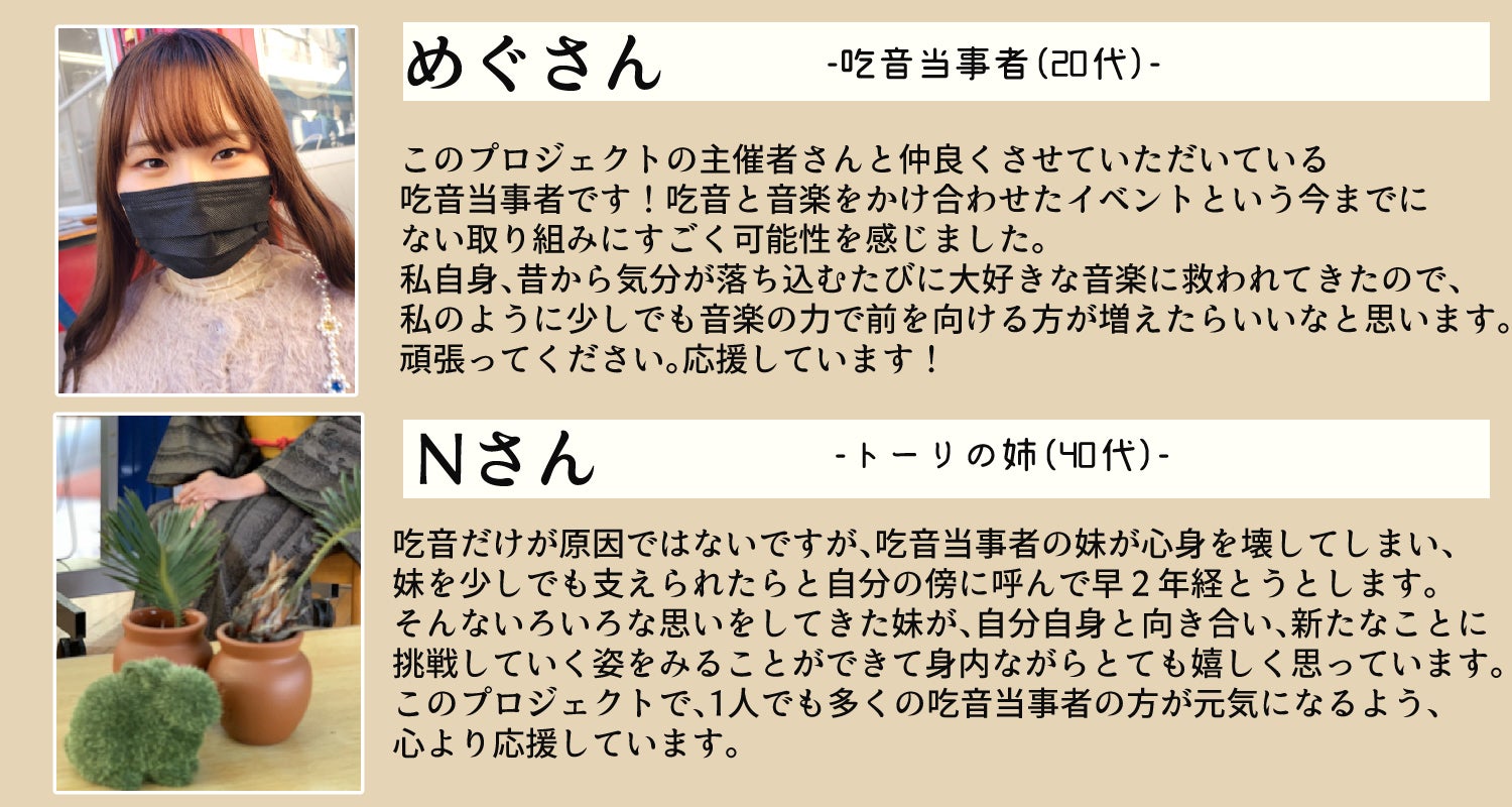 上記音楽活動をしている2人以外にも、「吃音で色々諦めてきた」最年長と