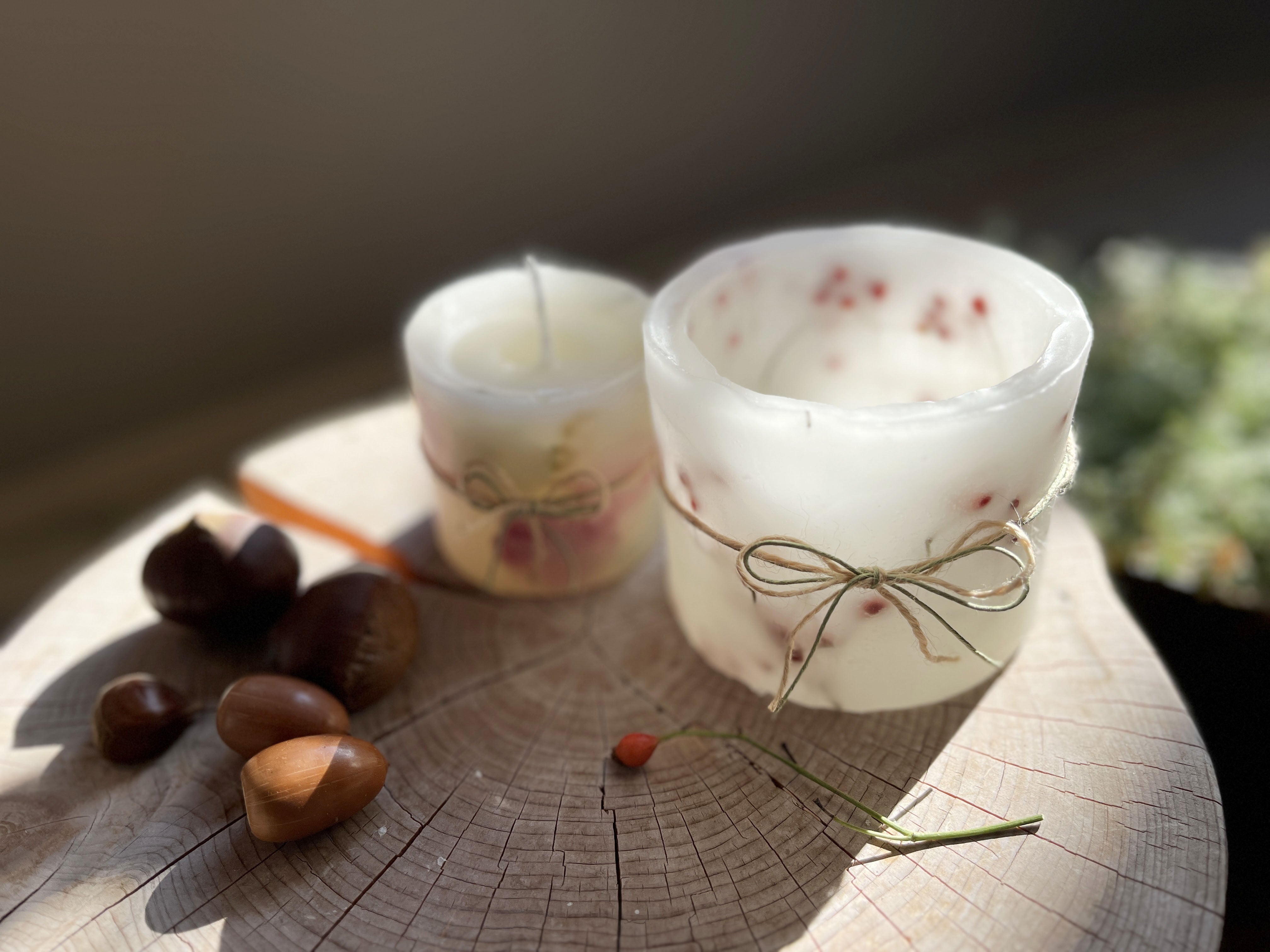 こんにちは、葛西真理恵です。那須は寒波で積雪中です。リターン品のボタニカルキャンドルのイメージ画像を更新いたしました。2024年以降、2023年に園内で採れた植物を使用したボタニカルキャンドルを制作しリターン品としてお届けいたします(※散骨した区画以外の場所で採れた植物を使用する予定です)・点火してお使いいただくキャンドル(直径約6センチ、高さ7センチ)・キャンドルランタン(直径約9センチ、約高さ8センチ)上記2点をセットでお届けいたします。使用する植物はその年の植物の様子によって変わりますので、デザインは来年のお楽しみ・・ということにはなりますが、ローズヒップなどを使った、色鮮やかなものにしたいと思っています。イメージ画像ではランタンにローズヒップを使用しました。点火した時のあたたかな色合いで、ほっとできるひとときをお過ごしいただければと思います。加えて、・那須の丘ロゴ入りノート・那須の丘ロゴ入りタオルハンカチご用意しました。ご検討ください!沢山のご支援に心より感謝申し上げます。今少しどうぞお付き合い頂けますよう、よろしくお願い致します。