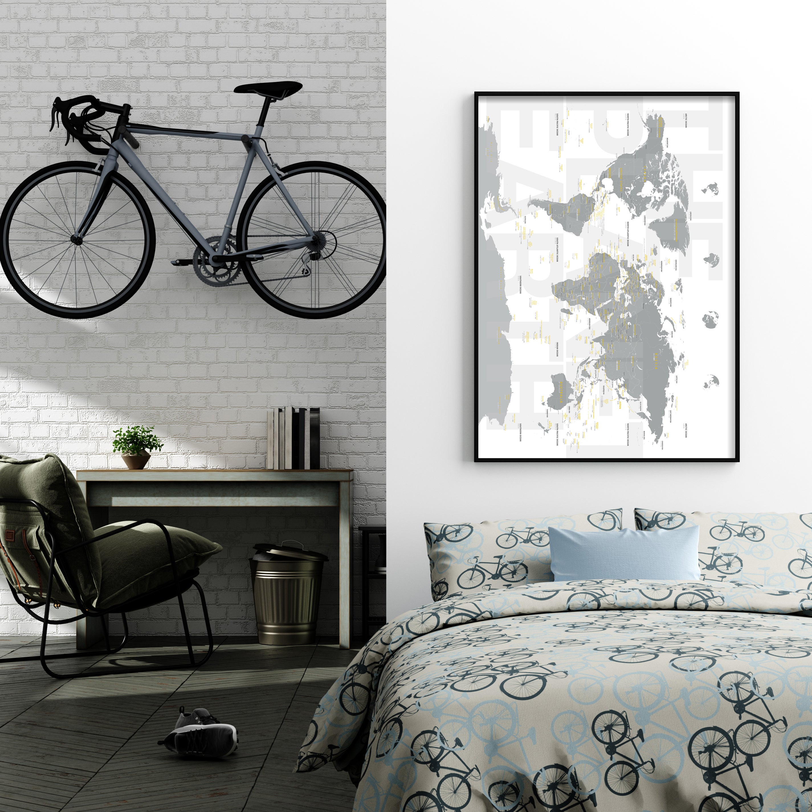 動物のいない「インテリアのための世界地図」はとてもモダンです。