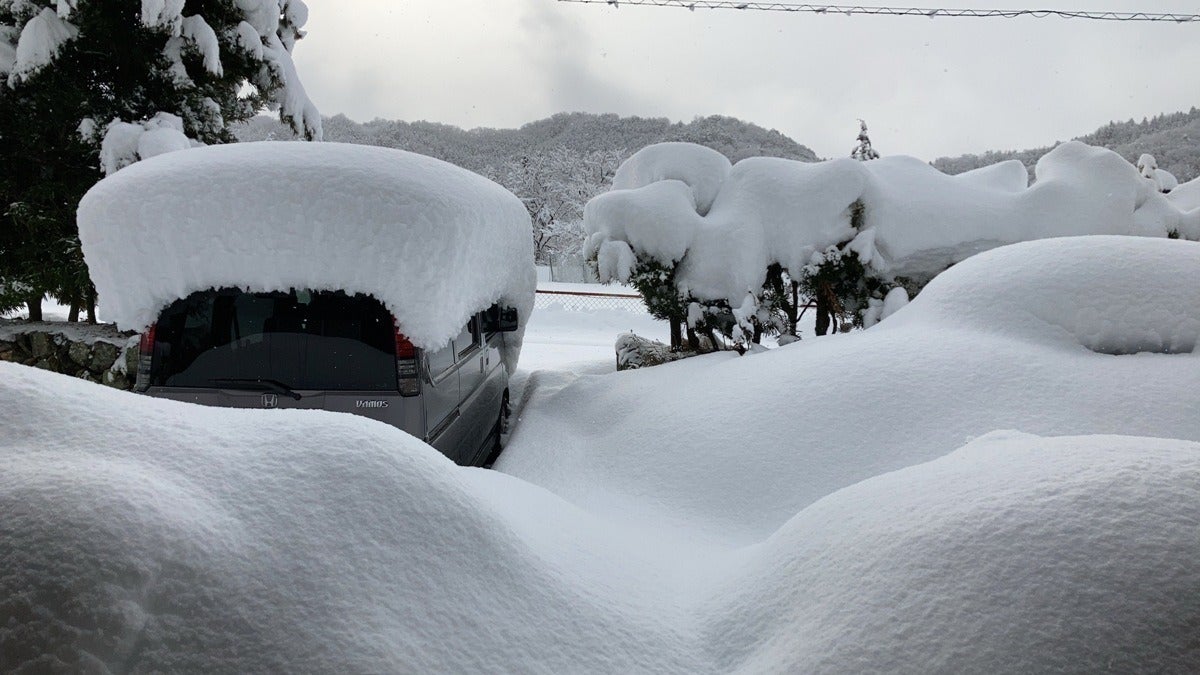 (一晩で60㎝位積もる事もあります。クロカン、スノーシューでの山歩きは最高!)