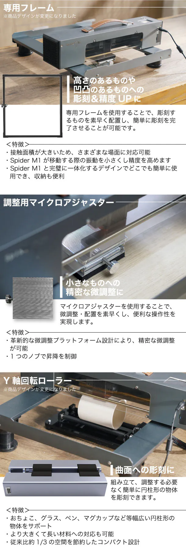 様々な素材のものにレーザー彫刻が可能なSpider M1。