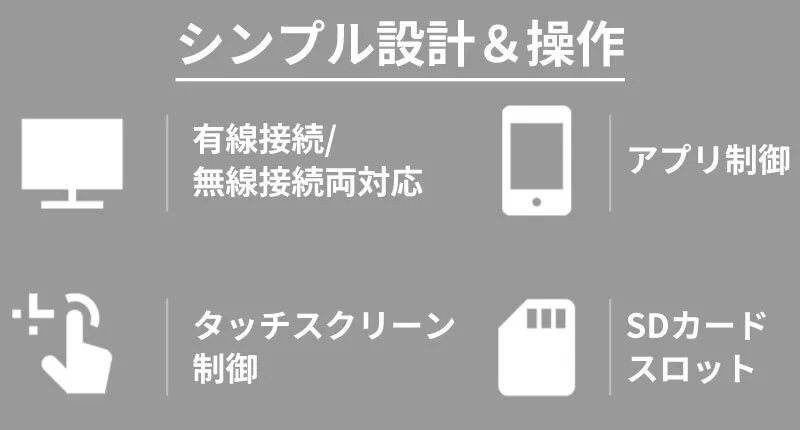 2.5 インチのタッチ スクリーンで操作できるSpider M1は非常にユーザー フレンドリーです。PCや携帯電話に接続し、アプリを使用した直感的な操作で効率的に使用できます。