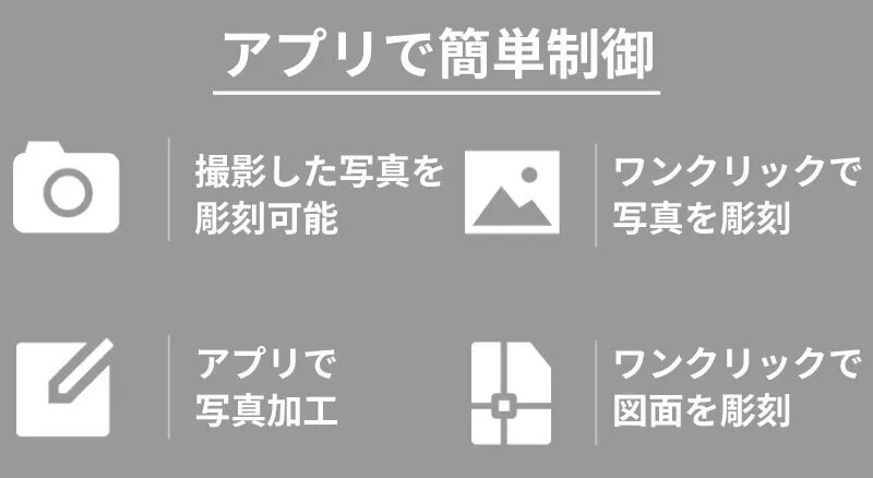 彫刻機とは思えないコンパクトな設計。持ち運びも楽にでき、プロ仕様の彫刻&切断が手軽に行えます。 一体型設計により、組み立てが不要です。