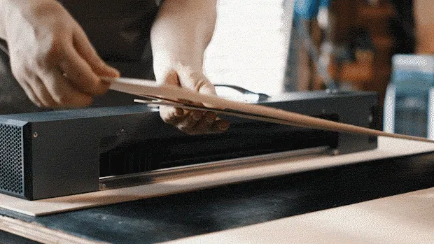 Spider M1 の作業領域は200/400 mm × ∞です。横にスライドしながら作業するので、 Y 軸に沿って無限に機能し、あらゆるサイズのプロジェクトを彫刻および切断します。