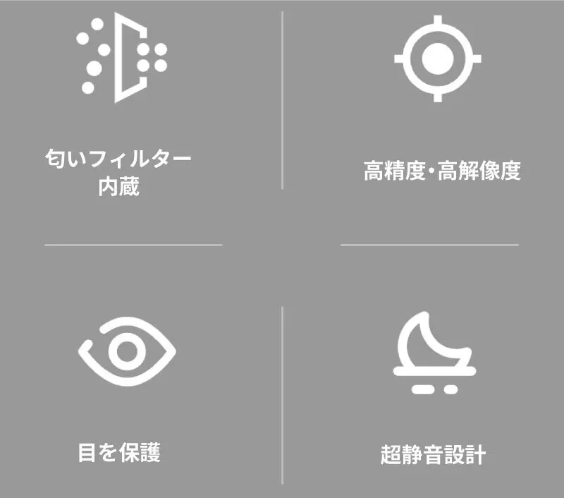 マシン音を抑え、住宅地での使用にも問題なく使用可能。また、煙・匂いフィルターを内蔵し、安全でにおいの少ない環境を提供します。