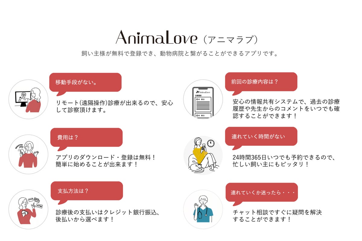 私たちが開発したのは、飼い主がスマートフォンひとつで動物病院と気軽に繋がることができるアプリ・AnimaLove(アニマラブ)です。