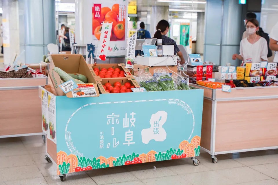 ▲JR池袋駅構内にて、岐阜の野菜や食品の出張販売を行いました(https://sakadachibooks.com/gifu-yasai-ikebukuro/)