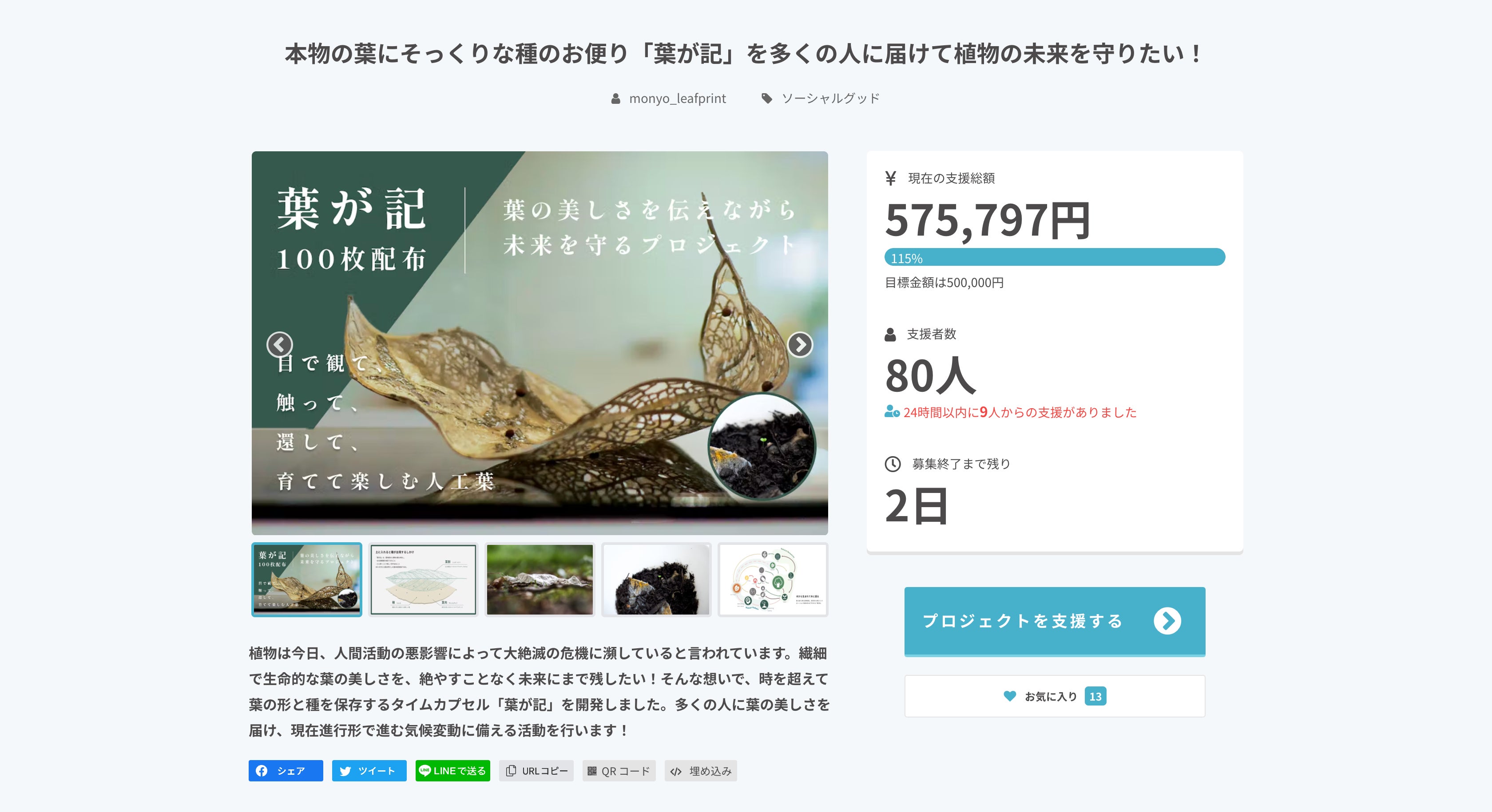 みなさまからいただいた支援金をもとに、リターンである葉が記を制作して参ります。