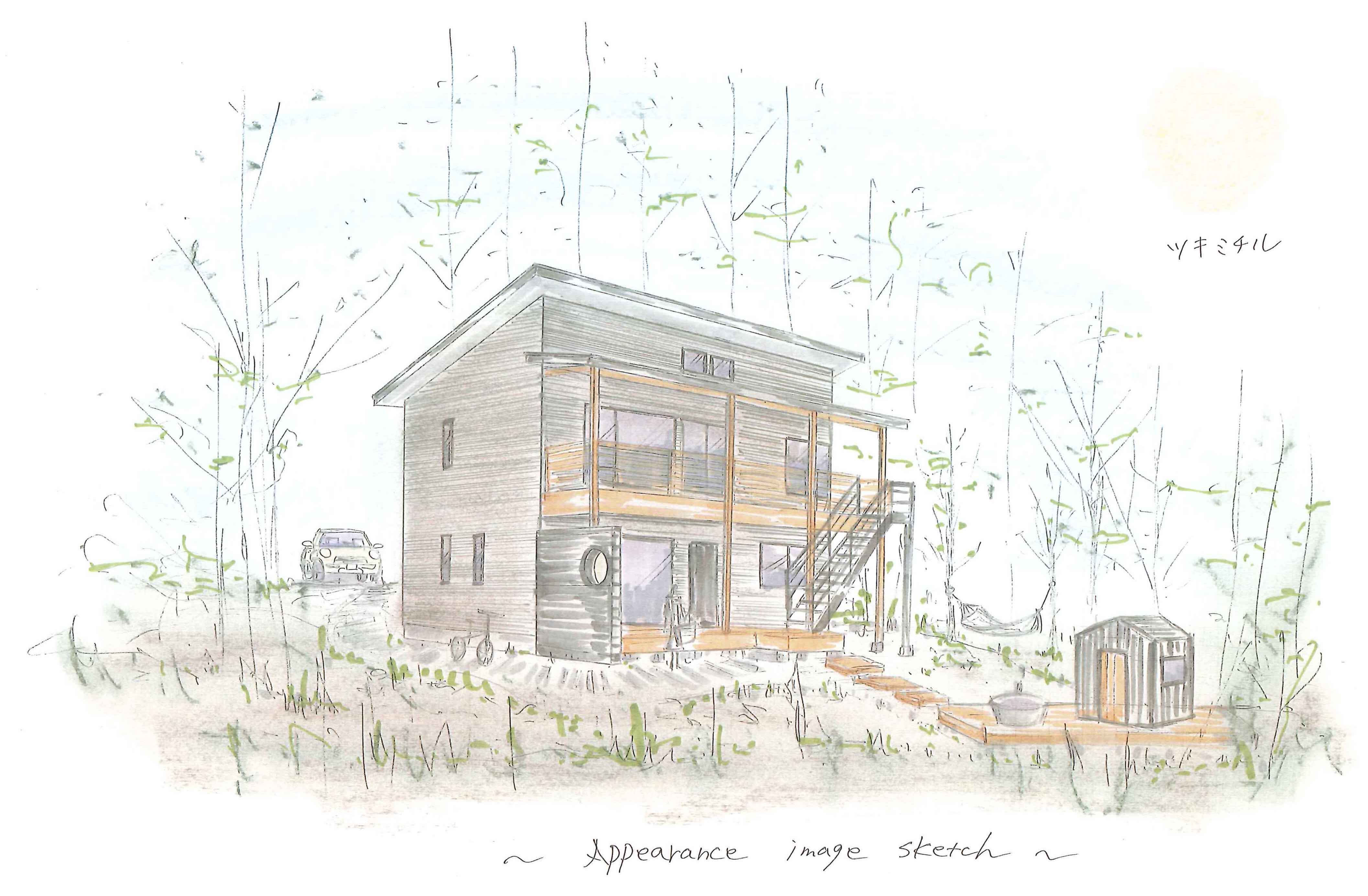 ツキミチルの外観イメージ。自然の中にひっそりと佇むまさに"隠れ家"です。