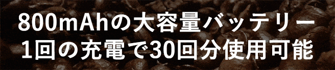 800mAhの大容量内蔵バッテリーで、1回の充電(90分)で約30回(1回15g)使用できます。バッテリー寿命が長く、頻繁に充電する必要がないため、外出先でも安心です。