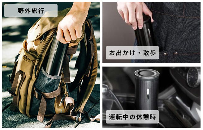 A5:zeroHeroは660gと軽量で、ミネラルウォーター1本分の大きさなので、リュックにすっぽり入り、外出先にも持っていけるサイズです。