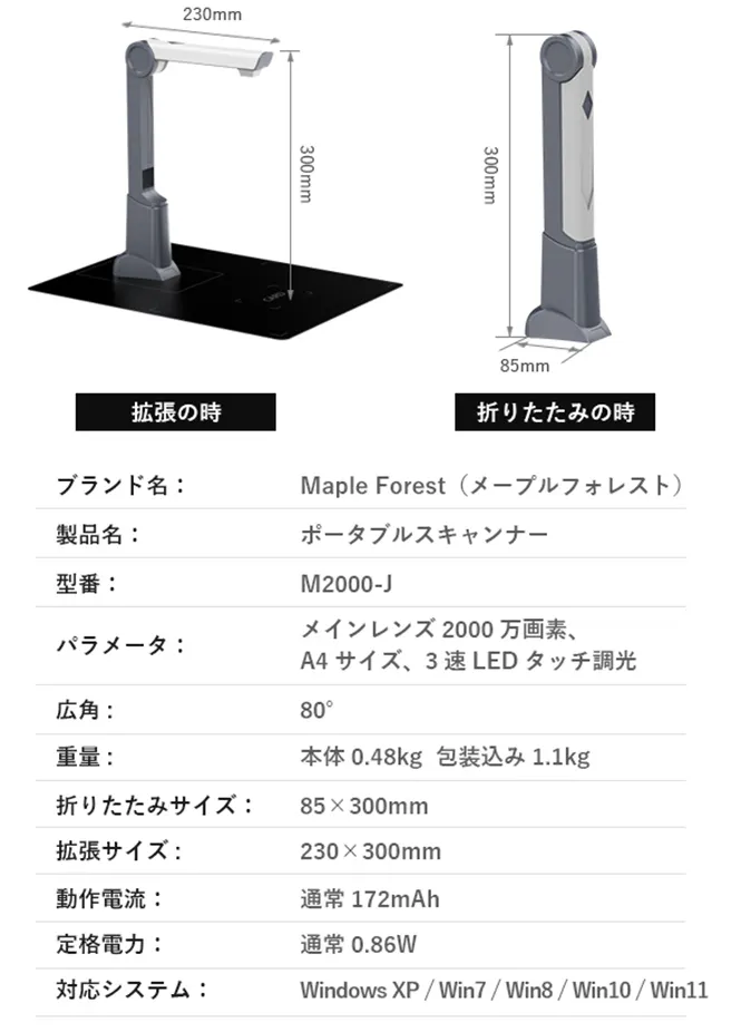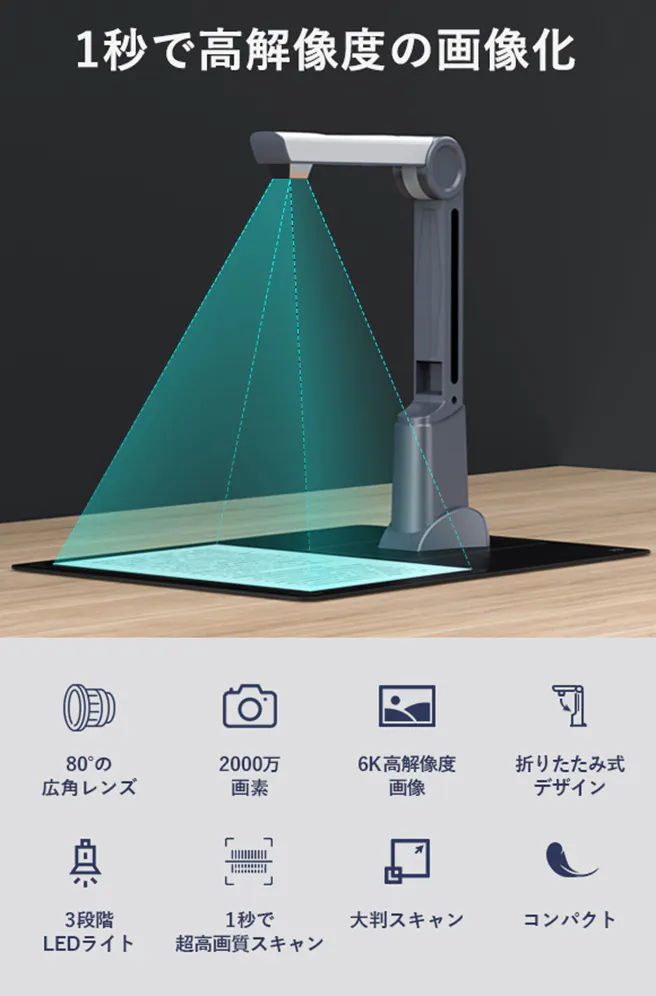 「M2000-J」 は、80°の広角レンズ + 2000万の超高画質のカメラを搭載しており、ドキュメントの細部と本来の色を鮮明に復元できます。