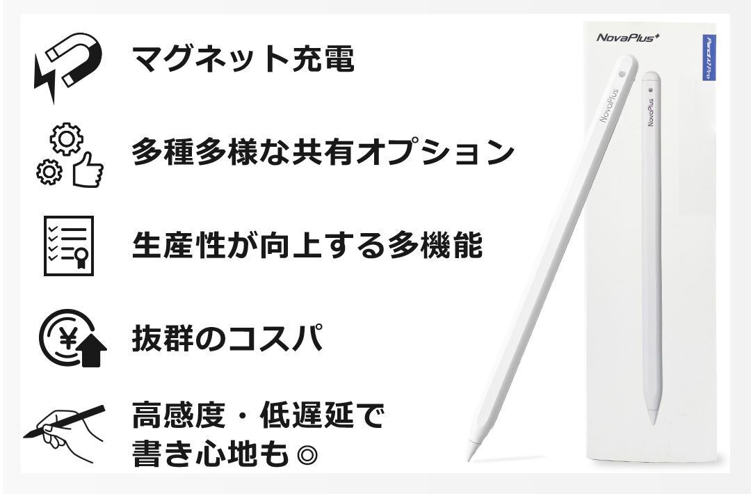 Nova Plus⁺ pencil は、低消費電力と省エネルギーバッテリーを所有し、長期間の待機、使いたいときだけすぐに目覚めます。Nova Plus⁺ pencil はあなたのiPadの生産性を強力にバックアップしてくれます。