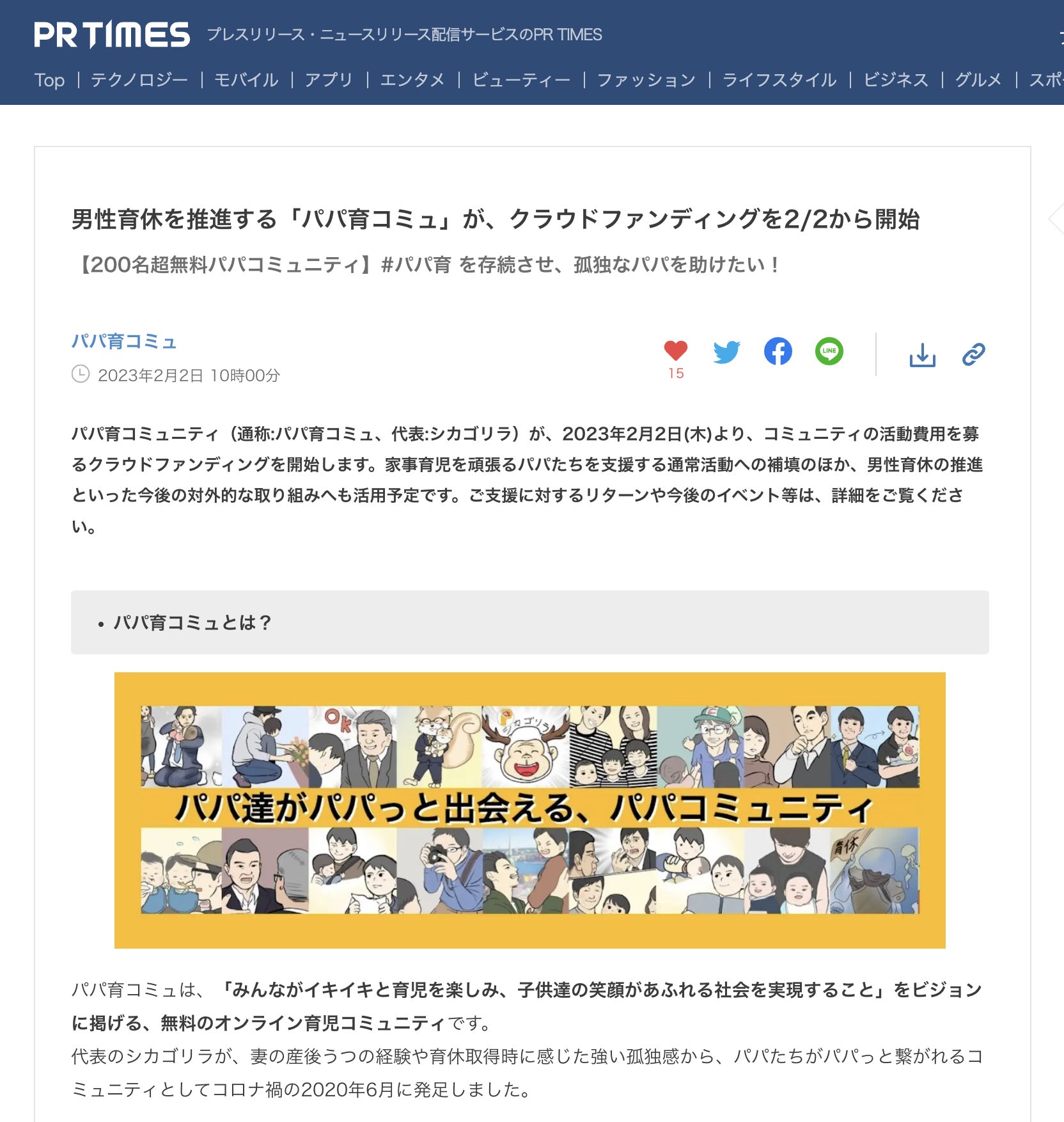 2/2より、パパ育コミュのクラウドファンディングの挑戦がスタートしました!