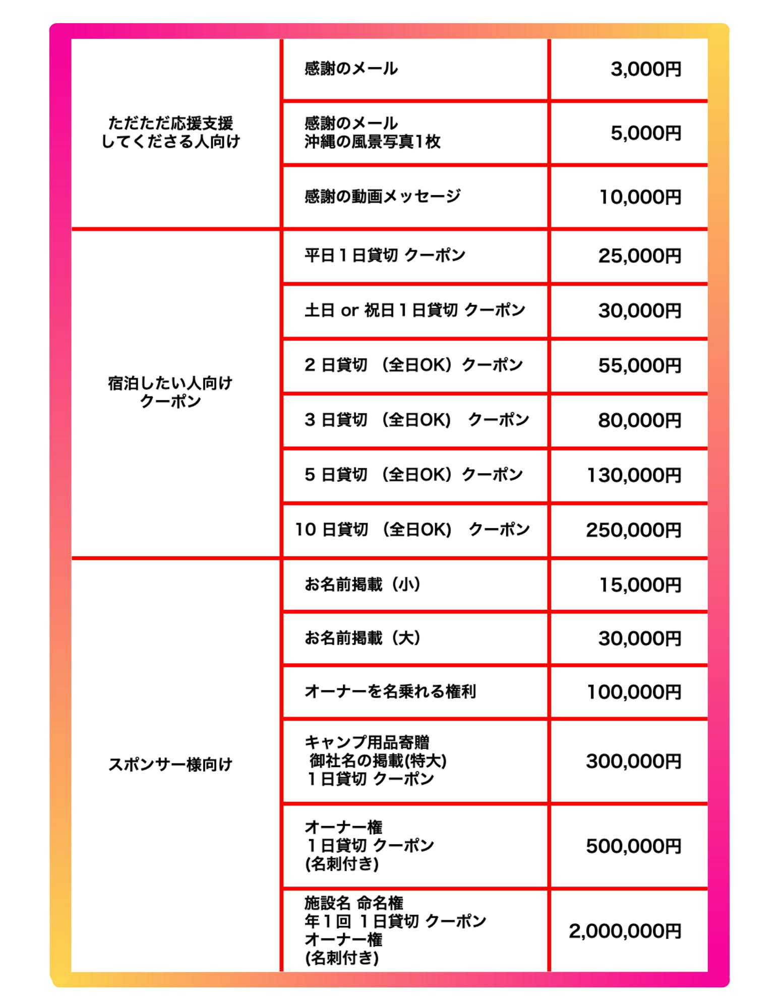 (リターンに対してのご案内は、随時ご連絡と相談。)
