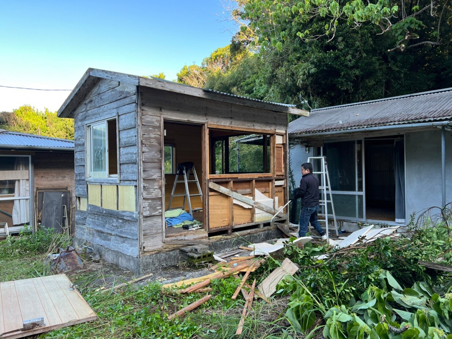 ズドーーーーーーン!!!!圧巻の倉庫部分から建物を真横に15メートル以上のブチ抜きあるのかな?将来は、コンテナハウスに住んでみたいと思っていたのですが、少し夢が叶った気持ちです。さぁ〜、工事の続きの様子です。要らない天井の添え木をひとつひとつ、丁寧に外していきます。増築部分の要らない壁もハツって壊していきいます。家で一番大きい掃き出しの窓サッシも・・・PONっ!!笑増築部分も綺麗にしました。また、壁などに残った細かな釘などをサンダーで切り落として左官しやすいように平らにしていきます。水回りも1から作り直しするので一旦、壊します。トイレも和式から洋式にする為、撤去です。キッチンの窓も作り直します。サッシの撤去から。出窓部分。思った以上の太い鉄筋が入っていて結構時間かかた・・・・・・カラフルタイルもツルピカに♪キッチンも良い感じにするのでお楽しみに。人力で一輪車でハツリ作業の残骸を外に運び出します。ちょっと懐かしい・・BEFOER↓↓AFTER↓↓最初の面影がまだありますが、かなり様変わりしました。そして、ゴミも増えてきました。。苦笑。そろそろ掃除しないと。。間取りや導線とかを考えすぎて、よくゴールがわからなくなる日々ですが、着実に進んでいます。亀のようにのんびりでも良いんです。進めば良いんです。だって諦めずにやりつつ続ければ、必ずゴールはある!って知っているから。と自分自身に言い聞かせてひたすら頑張ります!! これも全てはご協力のHARU KOGYOさんと皆さんの応援・ご支援のおかげです!ありがとうございます。次はブロック積みの様子や左官をして、貸別荘がどんどん変化して綺麗になっていく様子もアップ出来るかと思います。続報をお楽しみ待っていてください。また、活動報告でお見せ出来ていない工事の様子や動画、思いの丈などは、今後も公式インスタグラムにて見れるようにしていきます。フォローまだの皆さん。フォローお願いします^^:公式インスタグラム↓貸別荘アカウントもしくは、besou_okinawa38 でインスタ内で検索してね。おまけ・・名護から帰宅時の海岸線のサンセット。疲れ吹き飛ぶぜ!!