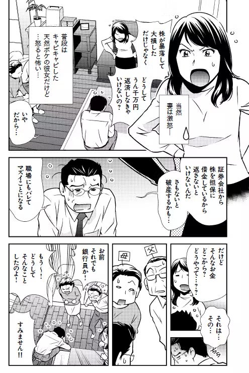 しかしそれはあくまでも、表向きの顔。この陰に、当時は誰にも言えなかった裏の顔がありました。私は次のマンガのように、FXと株の信用取引で数千万円も大損し、莫大な借金を抱えて破産寸前にまで陥った銀行員でした。