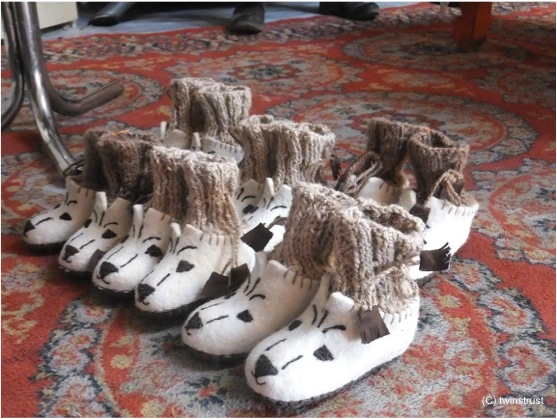 本日より、リターンメニュー(7,500円プラン)を追加しました!! モンゴルの地元住民がつくる「ユキヒョウ応援グッズ」ブーティ(限定90足) これは、ユキヒョウの住む山で暮らすモンゴルの人々が、 羊毛のフェルトでひとつひとつ丁寧に作ったユキヒョウ柄のブーティです。 現地でユキヒョウ保全に協力されている地元の方が、 この「まもろうPROJECT ユキヒョウ」を応援するため、 今回特別にリターン用に在庫を分けてくださることになりました(涙)。 靴のサイズは、1-2歳の幼児サイズです。 赤ちゃんへのプレゼントはもちろん、 インテリアグッズとして飾ってもかわいい一品です!! この機会にぜひ、 「まもろうPROJECT ユキヒョウ」へ ご支援のほど、何卒よろしくお願い申し上げます><!!! ※お願い※ 「ユキヒョウ応援グッズ」ブーティは、 モンゴルの方々が、ひとつひとつ丁寧に手作業でつくってくださいます。 完成でき次第、順次発送いたしますが、少しお待たせしてしまうことがあるかもしれません。 予めご了承いただきますよう、何卒よろしくお願いいたします。