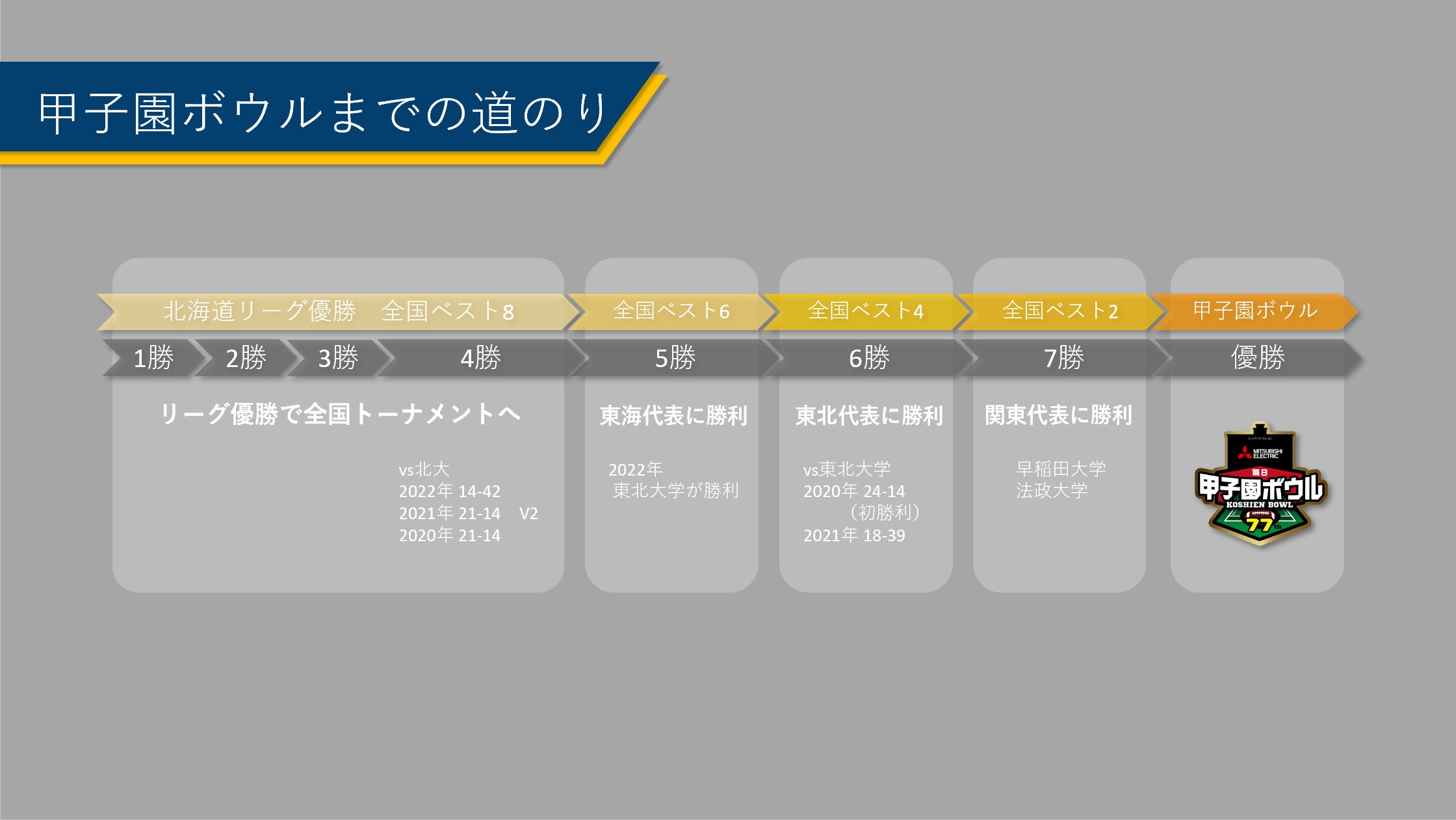 2020年には北海道リーグ優勝、40年ぶりとなる北日本優勝を果たし、2021年には北海道リーグ優勝2連覇を成し遂げました。しかし2022年シーズン、北海道優勝にあと一歩のところで届かず3連覇を逃してしまい、全国まで足を運ぶことはできませんでした。