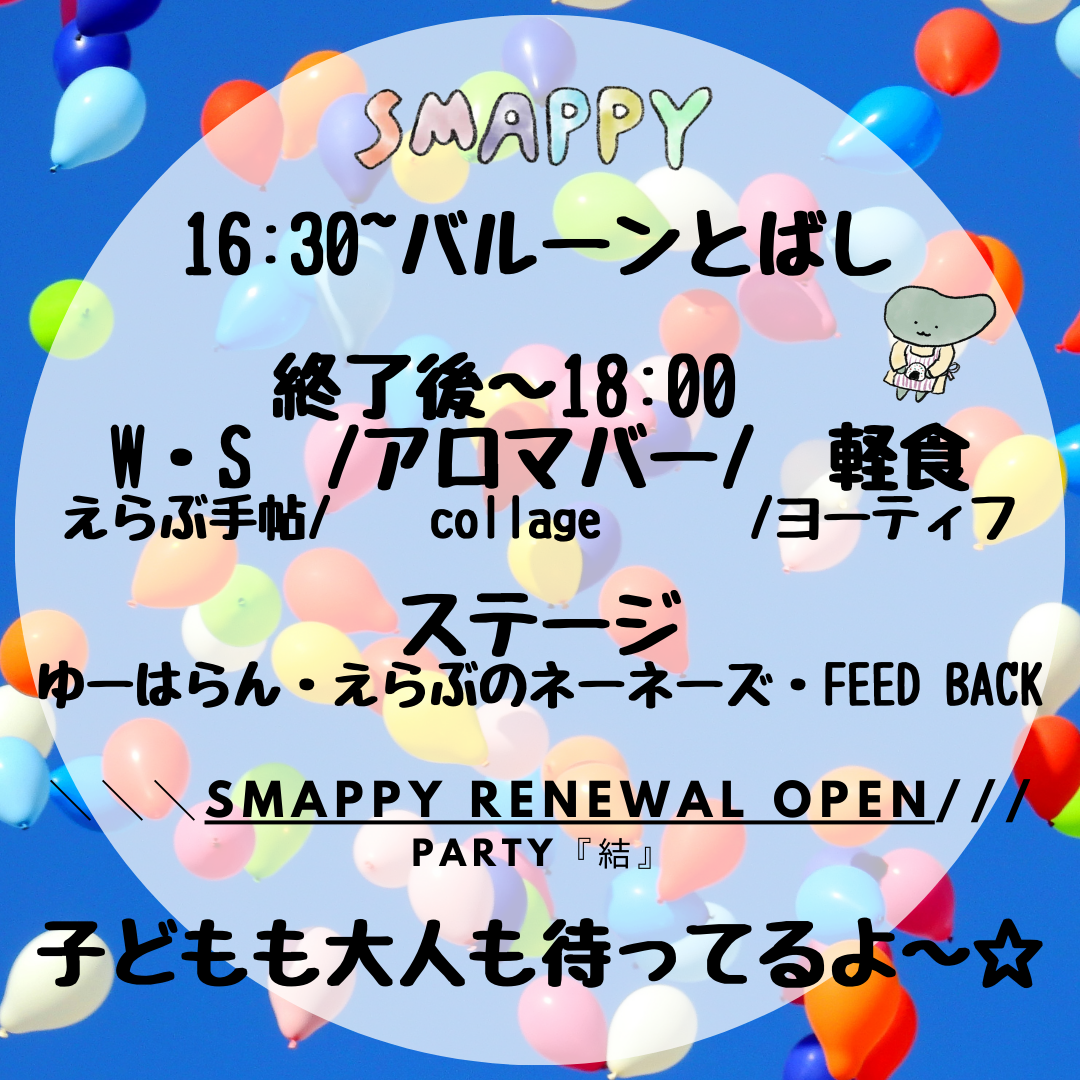 2023/11/08 22:339月よりスタートした改装工事も無事終わり、いよいよ明日はリニューアルスマッピーお披露目の日です。クラファン支援いただいた皆様、やっと遊具のお披露目できます!島の方はお時間許せば、ぜひ足をお運びくださいませ。ちなみにバルーン飛ばして環境への配慮どうなってるの?の疑問を持つ方、いらっしゃるかと思います。島の風船おじさん監修!記憶に残るバルーンリリース間違いなしいよいよ明日です明日は向かいの空き地が駐車場です。11/9 (木)16:30スタートスマッピーSMAPPY KIDS 開所記念バルーンとばしそのあとは室内にてe.lab.okinoerabuによる海洋ゴミをつかったワークショップcollage_erabuによるアロマバーヨーティフ(移動子ども食堂)による軽食17:20ごろからはerabuno_nenezyuharanbando58feedback_2015のステージ!なんとかギリギリ室内お披露目準備ができました!関係者の皆さま、開設の工事に関わっていただいた皆様もスマッピーの趣旨を理解していただき、準備期間も素敵な笑顔にたくさん出会いました。 前日準備もあれこれと、たくさんの人に支えてもらってるのを実感しながら、スマッピーメンバーだけでなく、関わる大人もワクワクしてくれているのが伝わってきて、いよいよスタートなんだと私たちもドキドキしながら、気が引き締まりました。明日はリニューアルスマッピーのスタートをみなさんお祝いしにきてください!明日は時間的にも難しい方が多いと思われます。11月いっぱい内覧に訪れやすいように遊び場も入場無料ですので親子で、お友達と大人だけで、でもお茶しに訪れてくださいませ〜 もっと見る