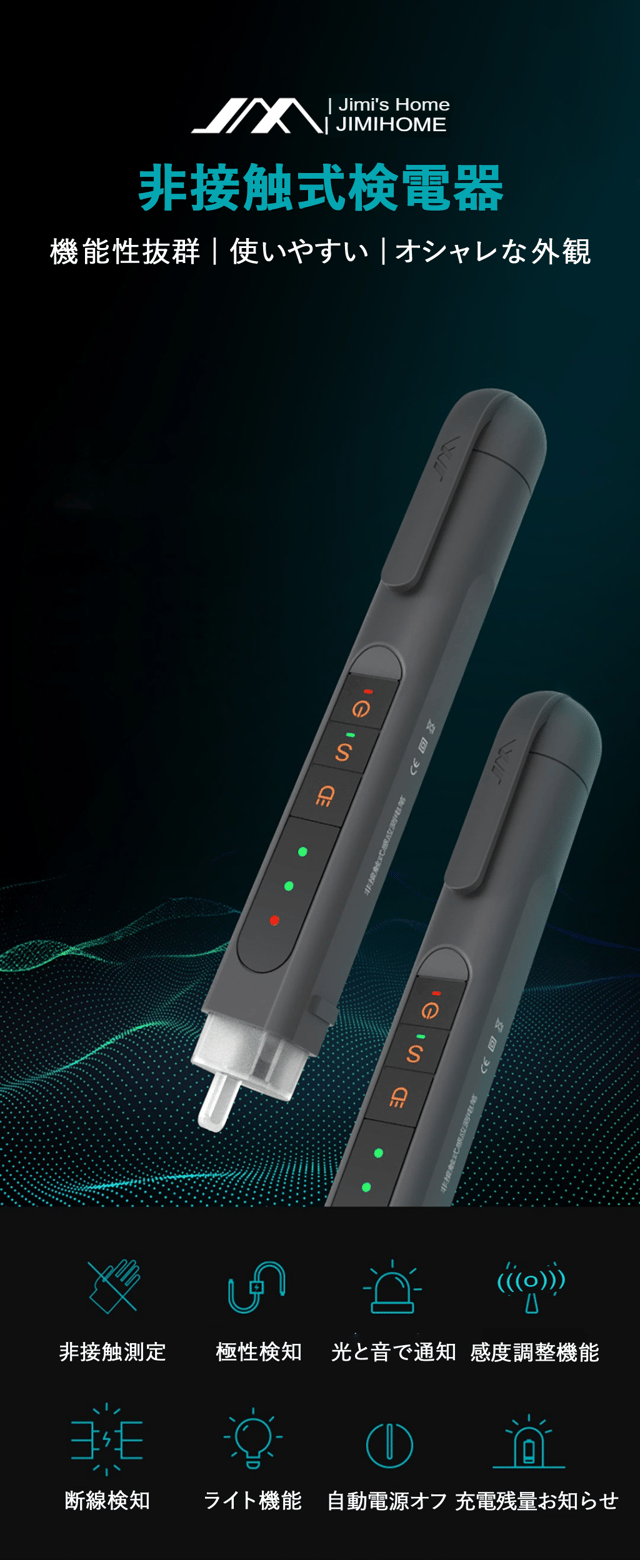 対象に触れずに測定が可能な非接触式検電器"JIMI TEST PEN"