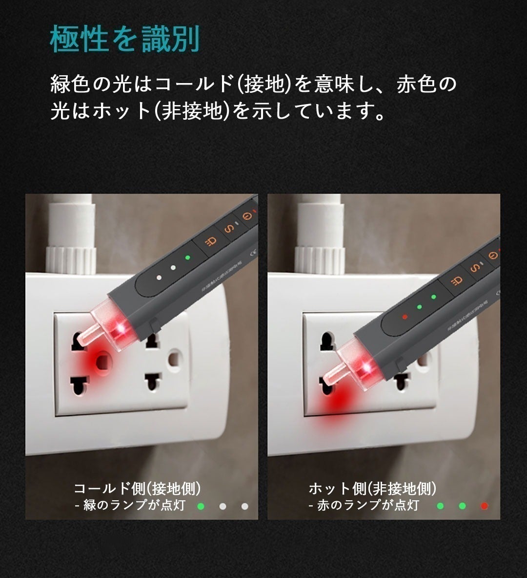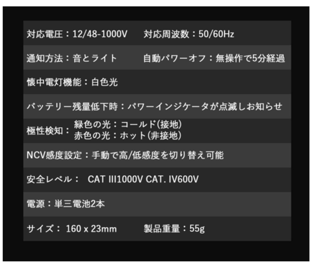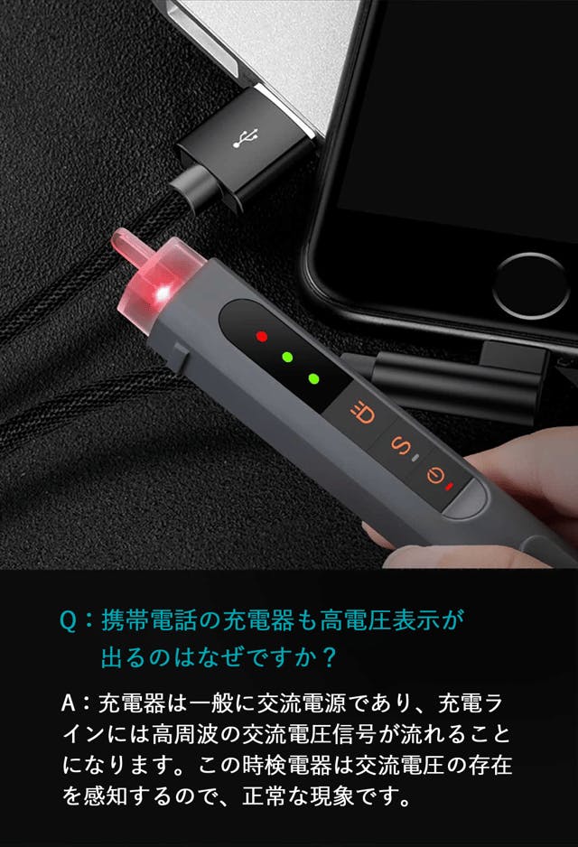 非接触式のため、電源に直接触れずに通電有無や電圧を測定できます!