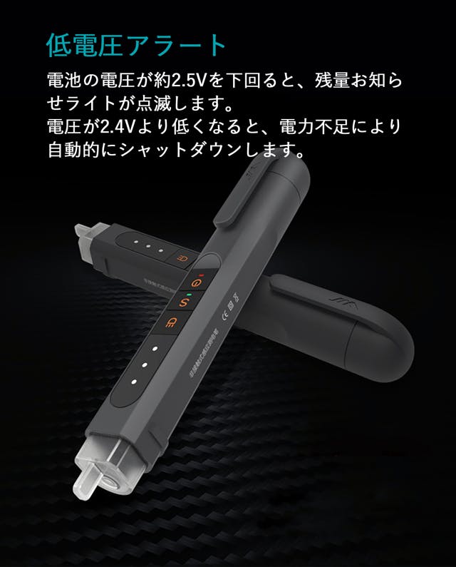 ■充電時期お知らせ:電池の電圧が許容レベルを下回ると自動的に電源OFFします。