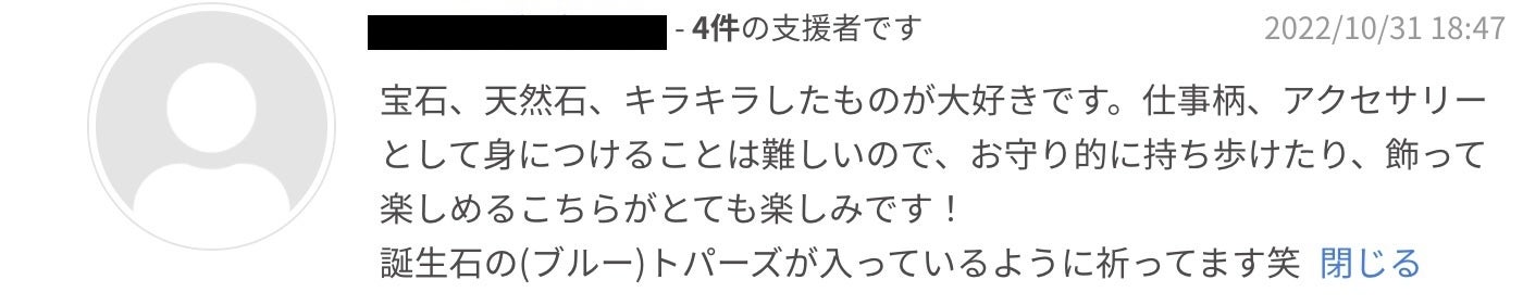 ・目標達成後は宝石の仕入と送料のために活用させて頂きます。