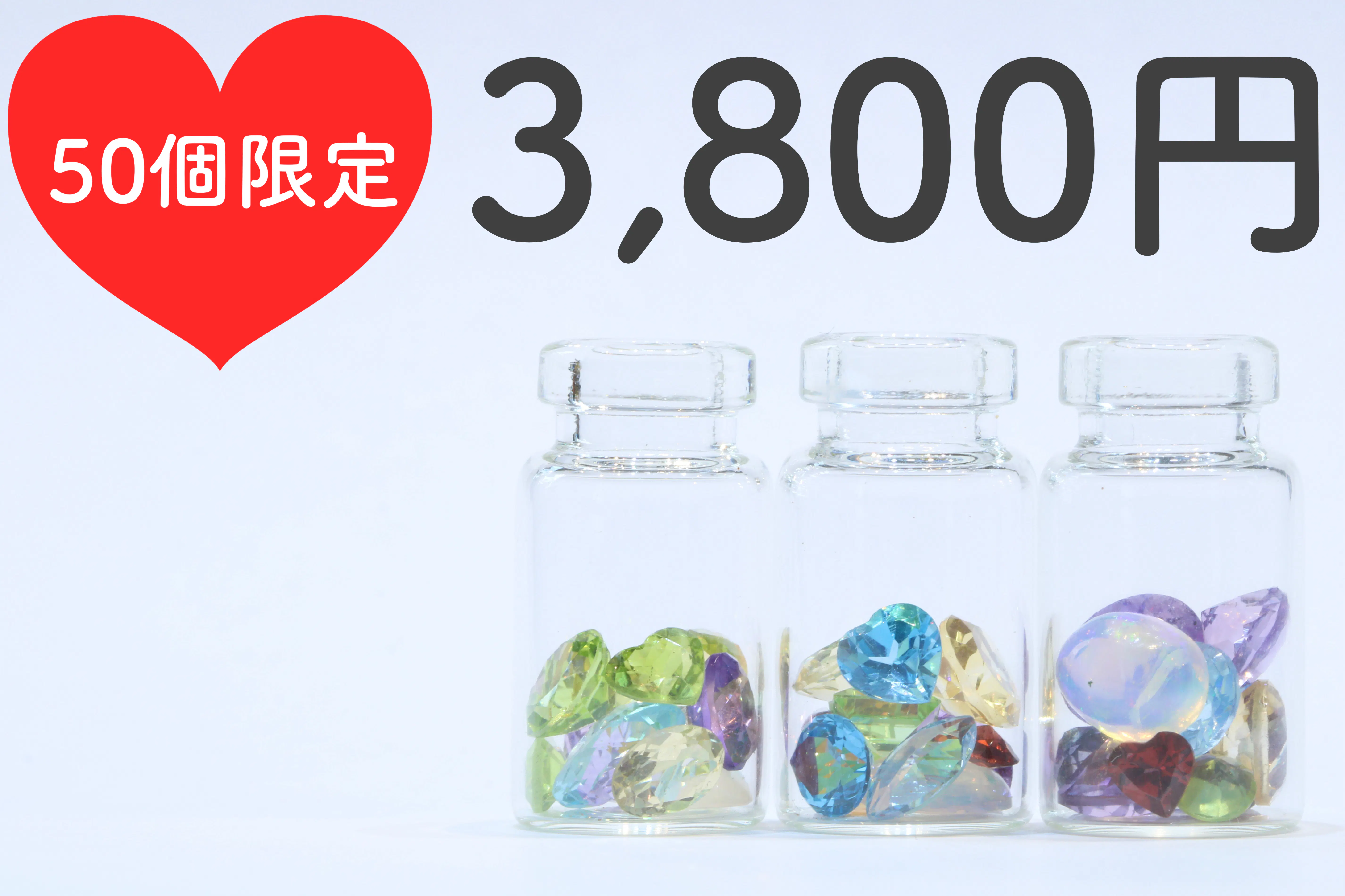 ・宝石瓶(半量) 1個 ハートカットの宝石が必ず1石以上入っております。