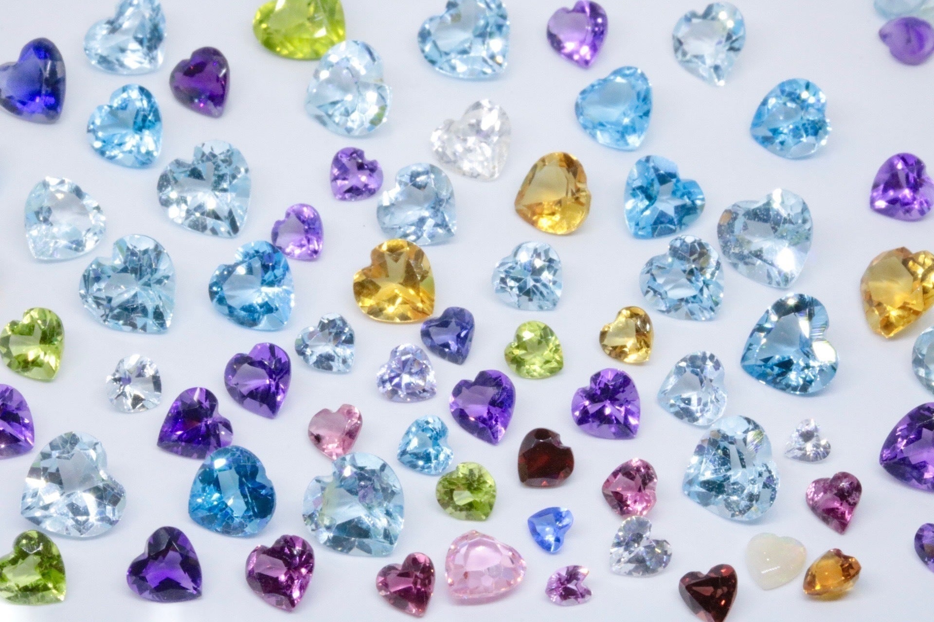 エメラルド・ルビー・サファイア・アイオライト・アクアマリン・ブルートパーズ・ホワイトトパーズ・トルマリン・ガーネット・アメジスト・シトリン・ペリドット・オパール・クオーツ・翡翠(ヒスイ)など