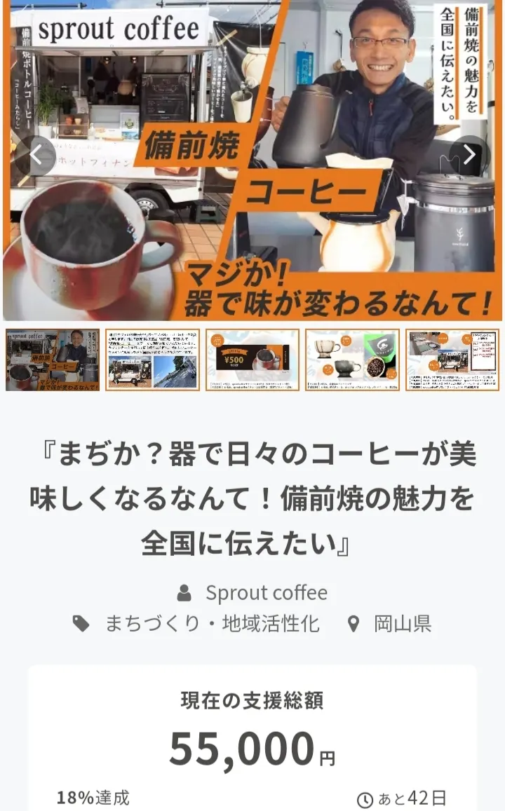 現在の金額55000円と、目標金額の18%も支援して頂きました。