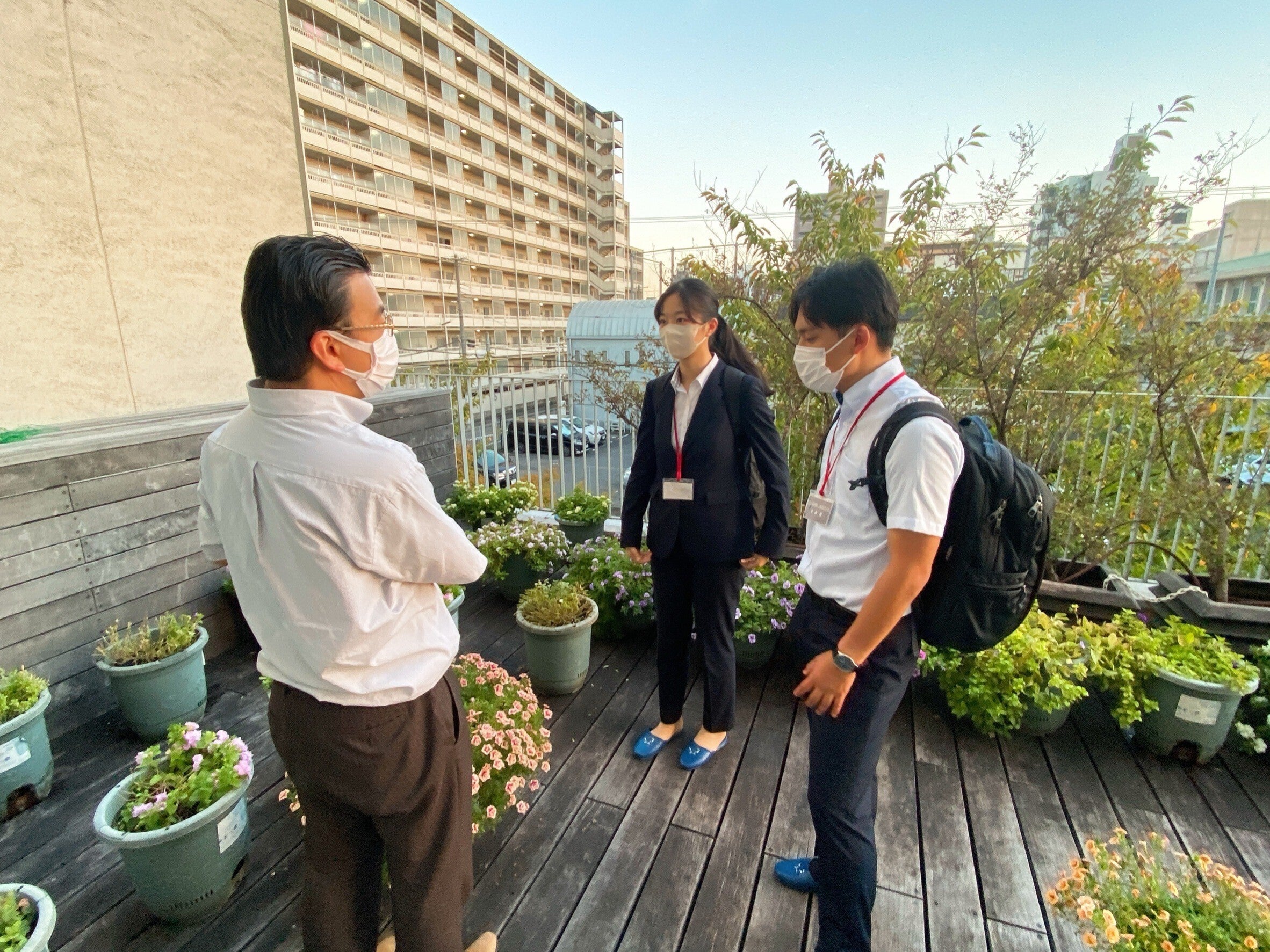この日は生徒会顧問の北側先生に実際に校内で育てているお花を見せて頂き、高校生との関わり方・苗の育て方などに関して1時間半に渡りお話を伺いました。