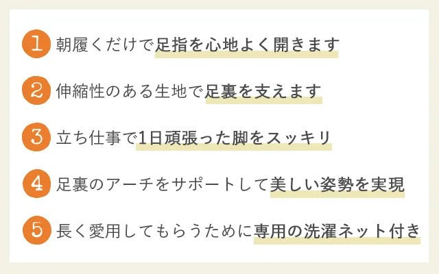 ①朝履くだけで足指を開いて刺激