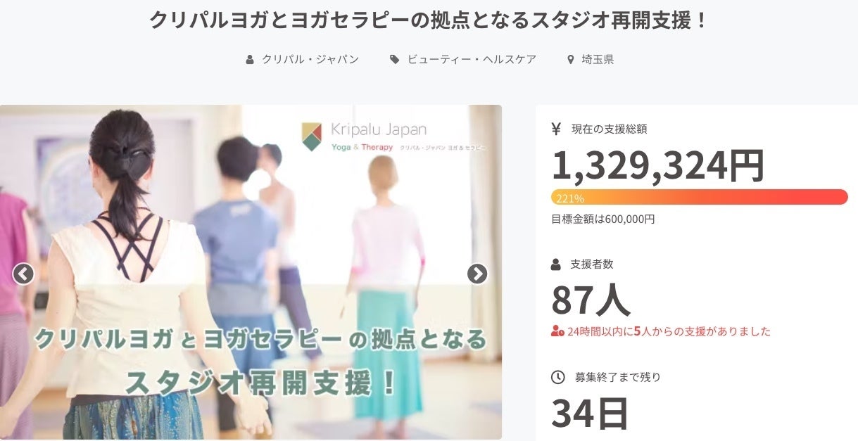 「クリパルヨガとヨガセラピーの拠点となるスタジオ再開支援!」プロジェクトにご支援いただきありがとうございます。