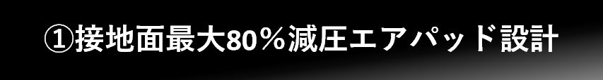 優れた耐荷⼒、耐衝撃性、および衝撃吸収性を備えた特殊な素材「TPUライクラ材がこの減圧を可能にしました。実際に接地⾯の圧⼒を測定機で測定してみたところピーク圧⼒の値が80%減少しており、これにより圧⼒が分散されている事が分かります。