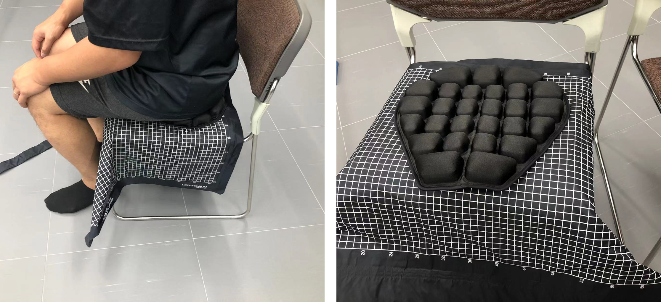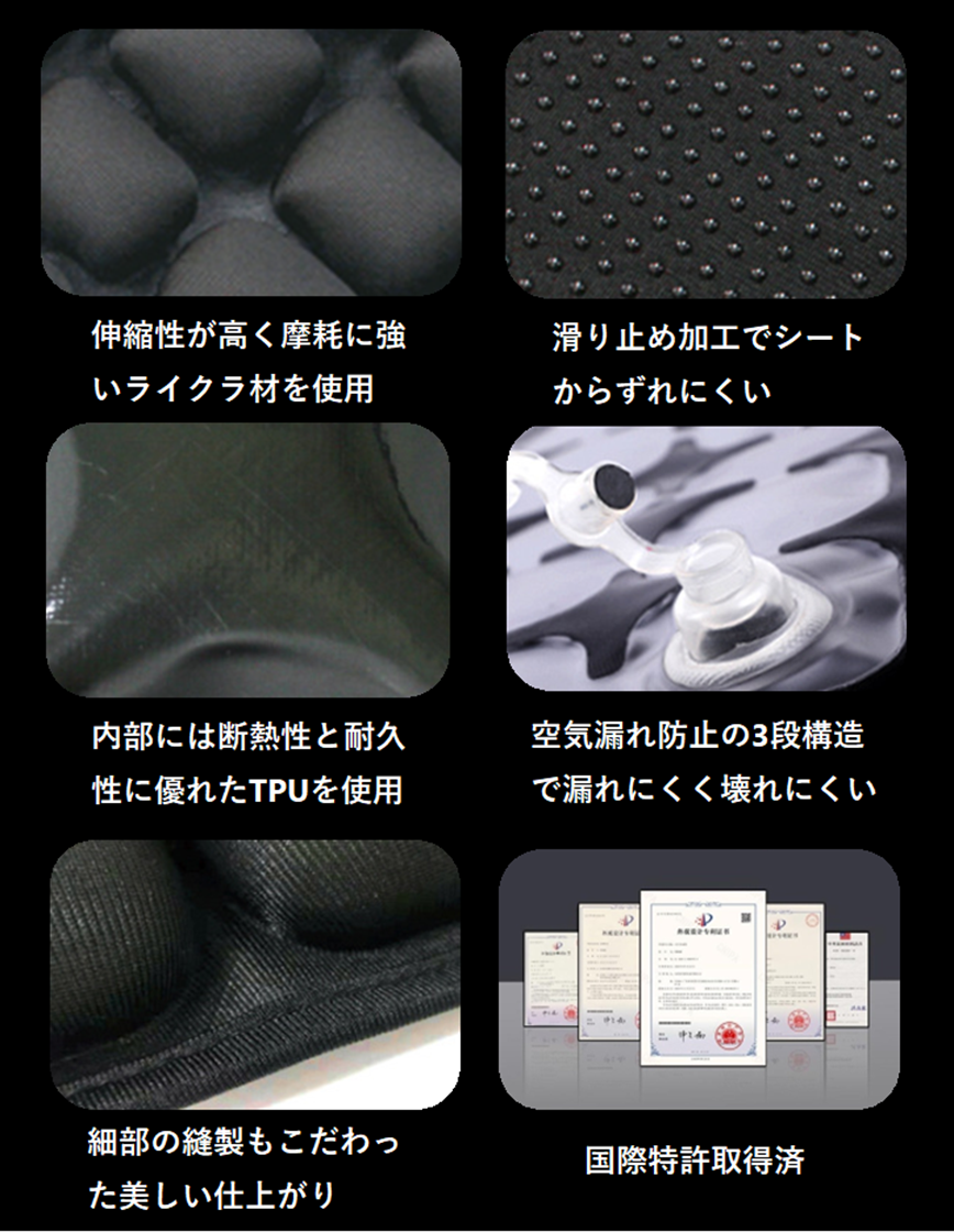 柔らかいエアパッドが圧⼒にフィットし⾻盤を⽀えます。