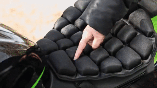 エアセルとエアセルの間の空気が通る隙間で空気が循環し⾼い通気性を保ちます。断熱性と通気性で下半⾝の蒸れや暑さを防ぎ、暑い⽇のツーリングも快適なライディングを楽しめます。