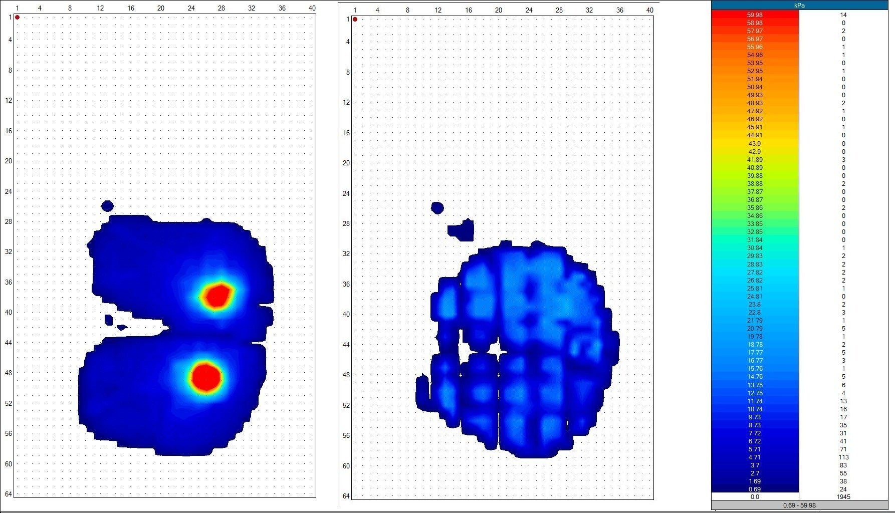 普通に座った場合のピーク圧⼒(110.31kpa)に対し、immersepadBIKEの上に座るとピーク圧⼒(22.58kPa)が80%減圧しています。