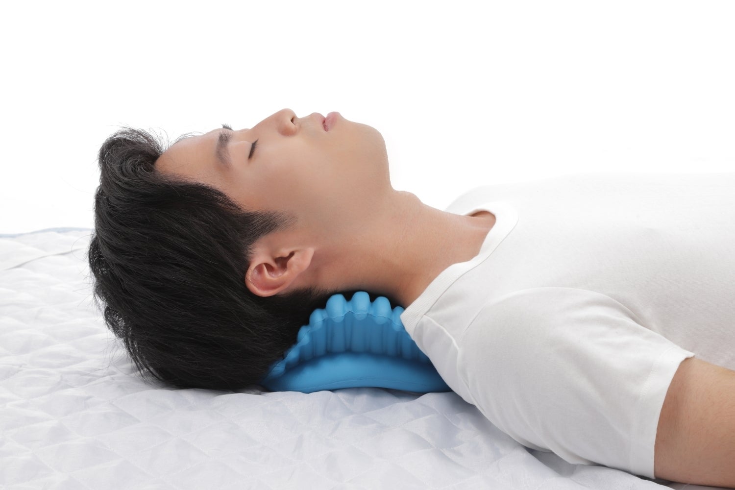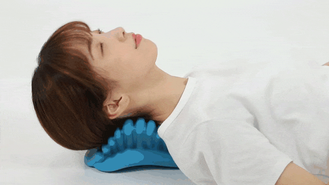 自分の頭の重さで自然に指圧を行い、筋肉のこりをほぐします。