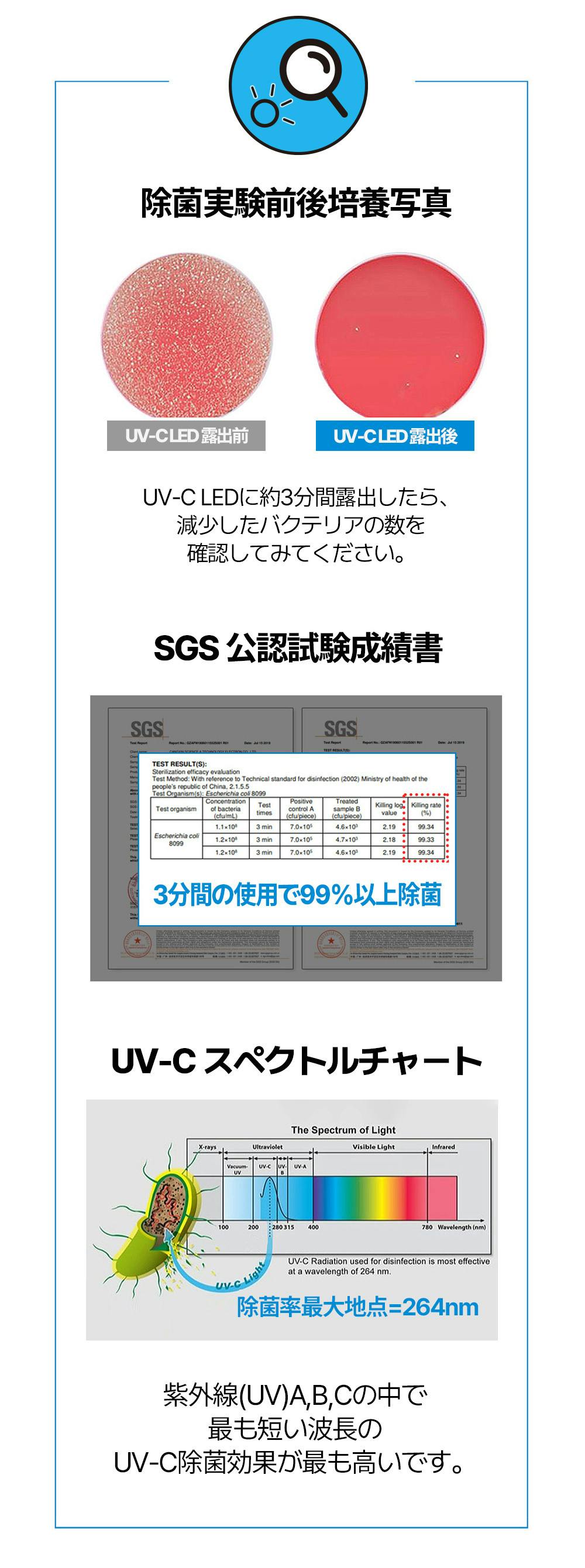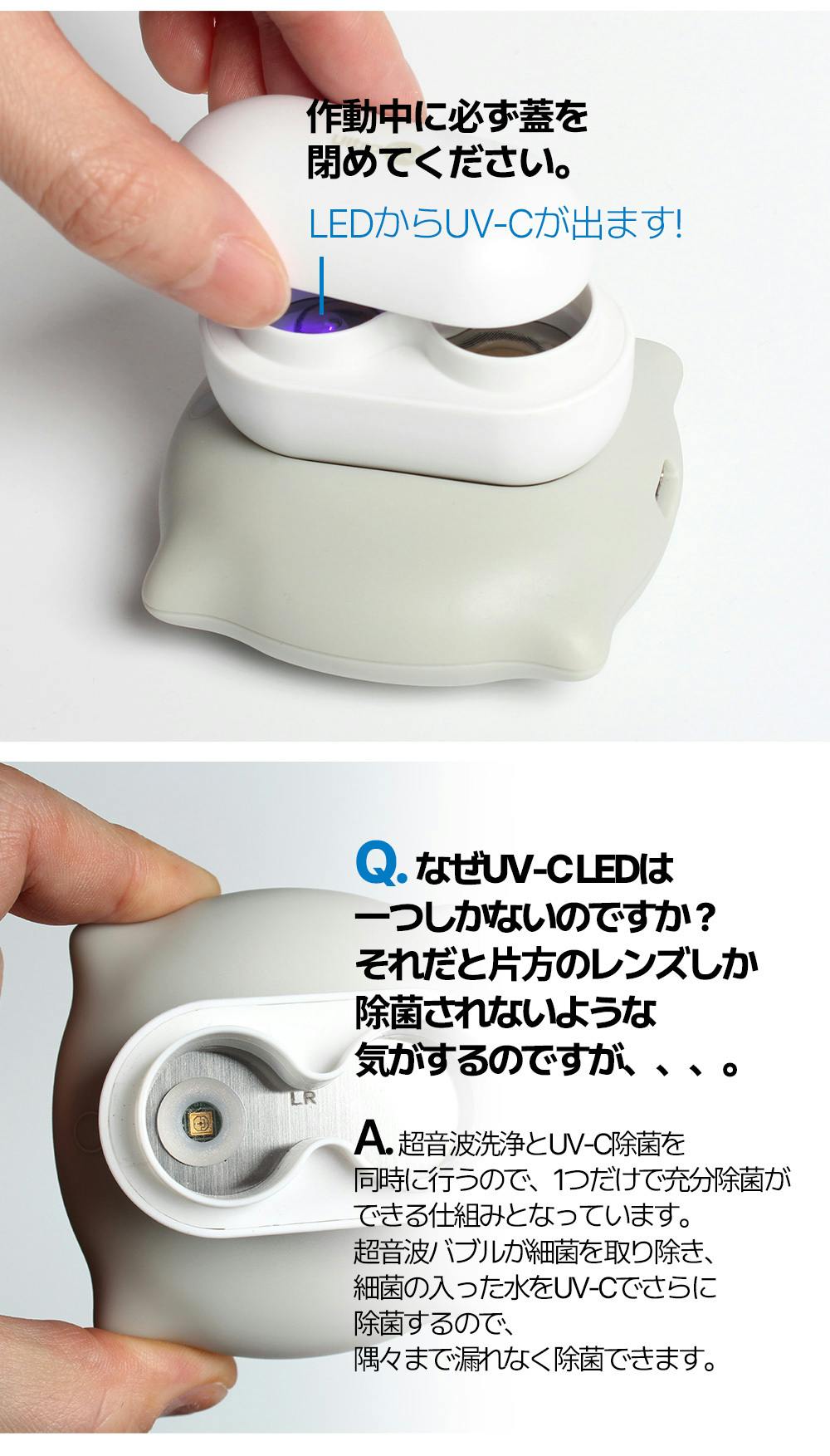 超音波バブルで洗い流した汚れや細菌をUV-Cで綺麗に除菌します。