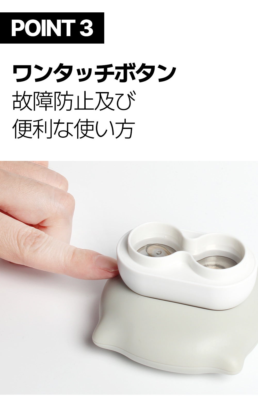 水槽と除菌LED付き洗浄部と充電端子とバッテリー付き充電部を物理的に分離して浸水による故障確率を最小限に抑えました。