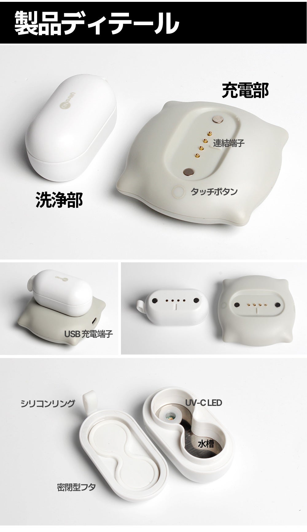 A。 一番大きな違いは、超音波洗浄とUV除菌を同時に行う製品だという点です。一般的な製品はUV除菌機能はなく、超音波方式とは違ったモーター振動方式の製品です。水槽がステンレスであるかを確認することと、UV除菌ができるのかを必ずご確認ください。