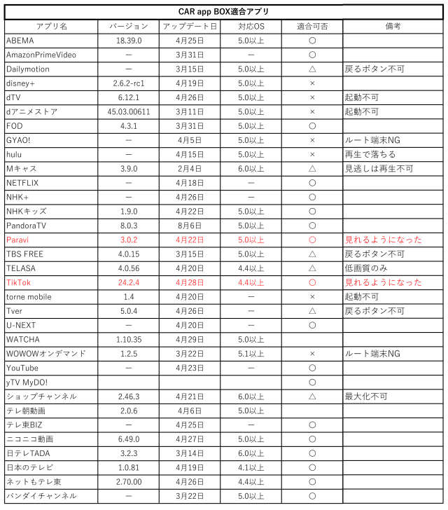 A:詳しくはページ内の適合アプリ表をご覧ください。