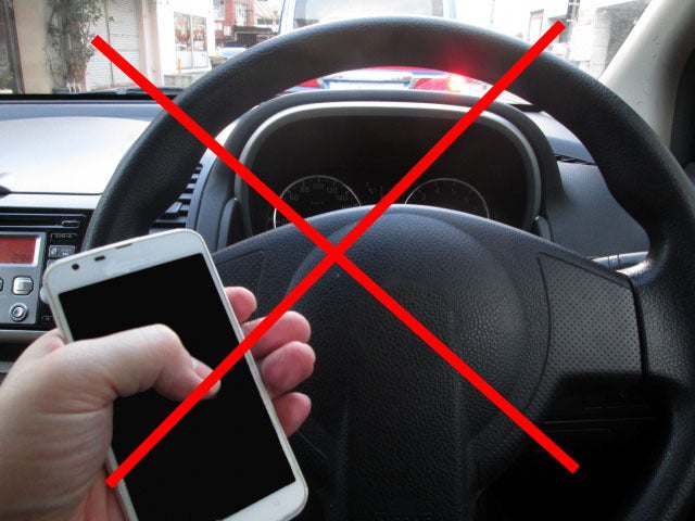 このような車を運転しながらのスマホの操作はしてはいけません。