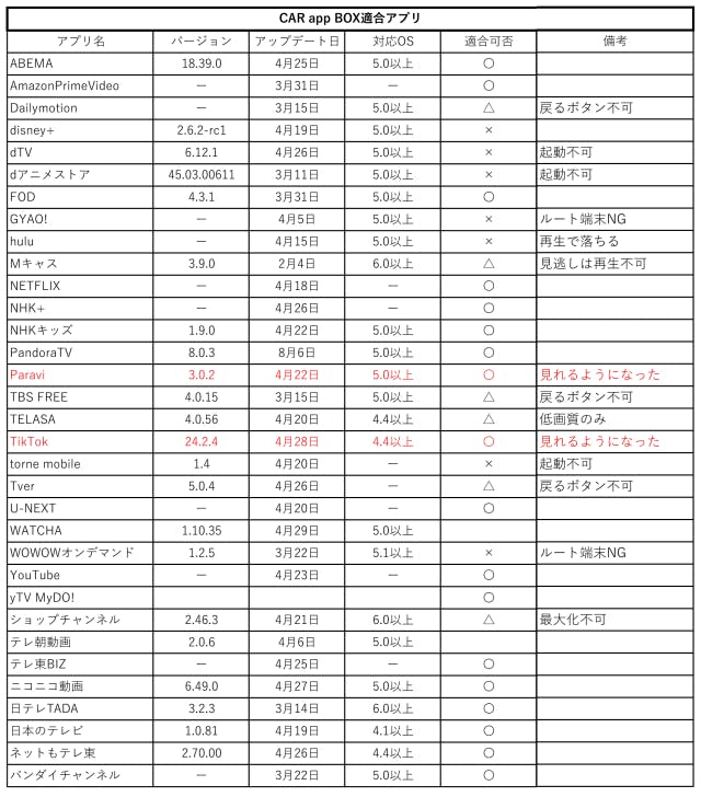 Android Autoの適合表はこちら