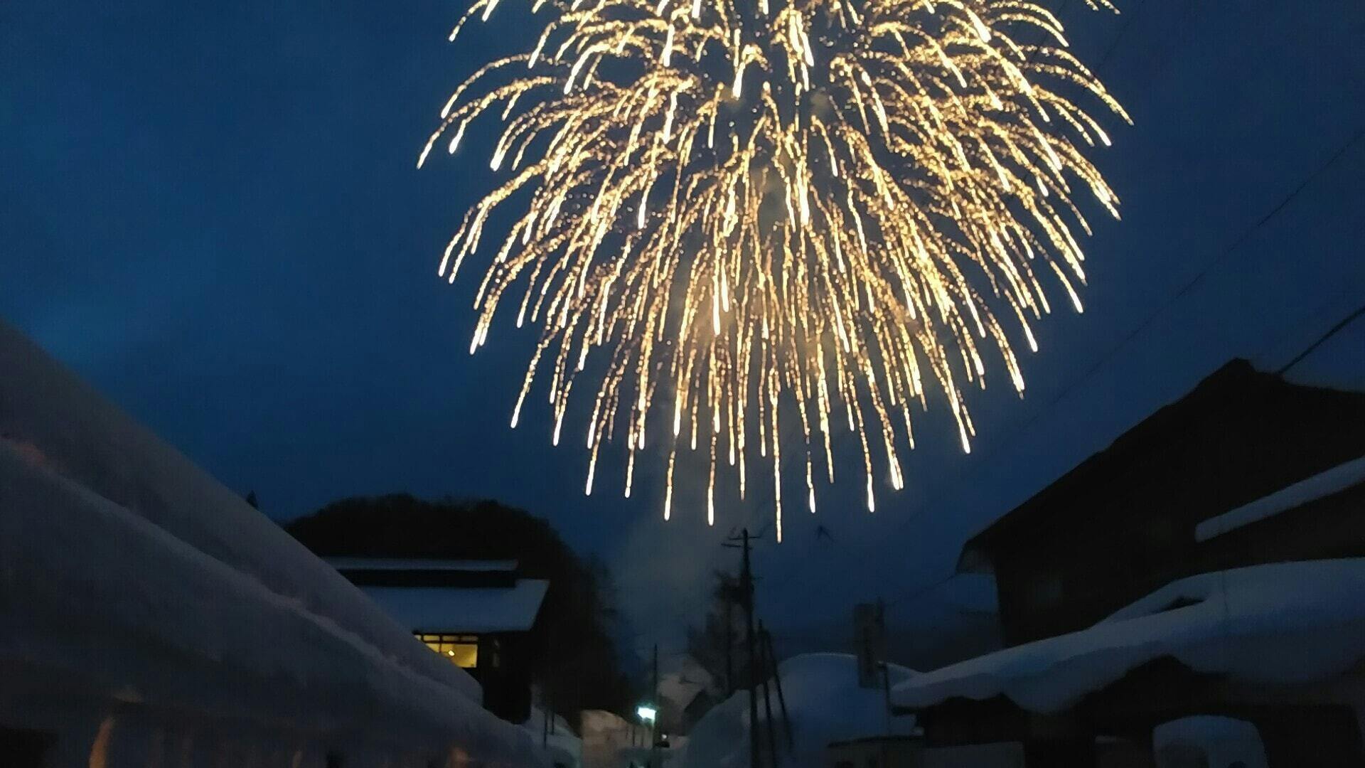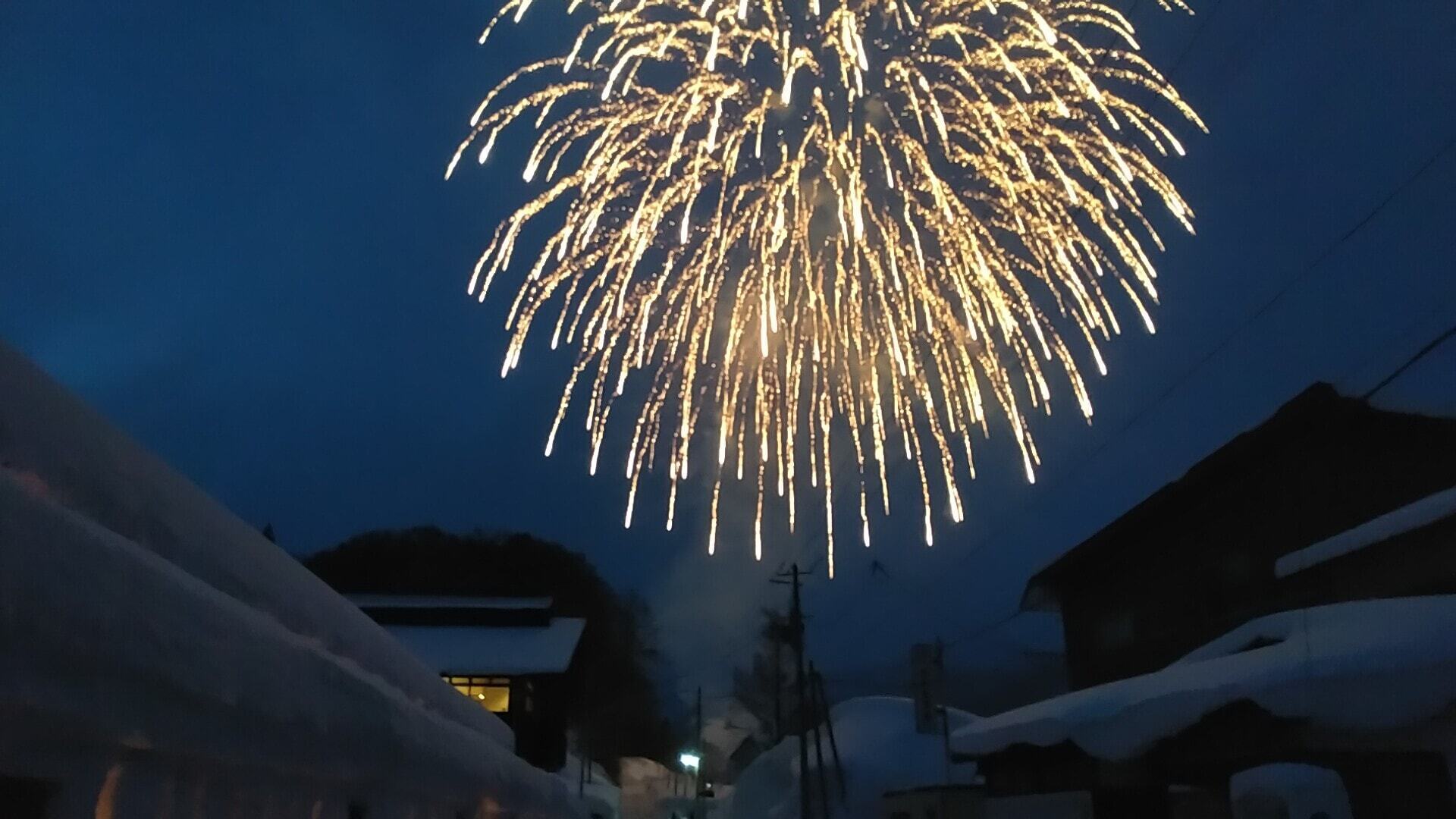 このような条件が、雪旅籠(ユキハタゴ)の灯りの期間に、ちょうど整います。空気がキンと冷えた夜に、パッと花開く冬の花火は、きっと思い出に残るでしょう。