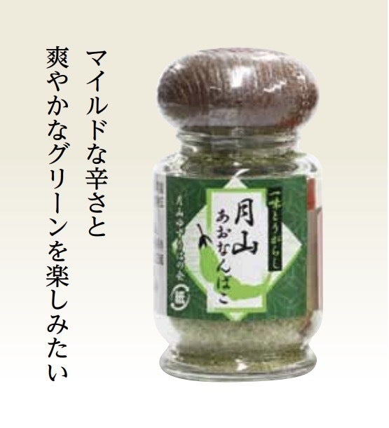 ・青なんばこ・・・ありそうでなかった緑色のなんばこ。綺麗な緑色を出す為に、唐辛子の品種や乾燥温度にこだわっております。爽やかなグリーンが料理に映えます。