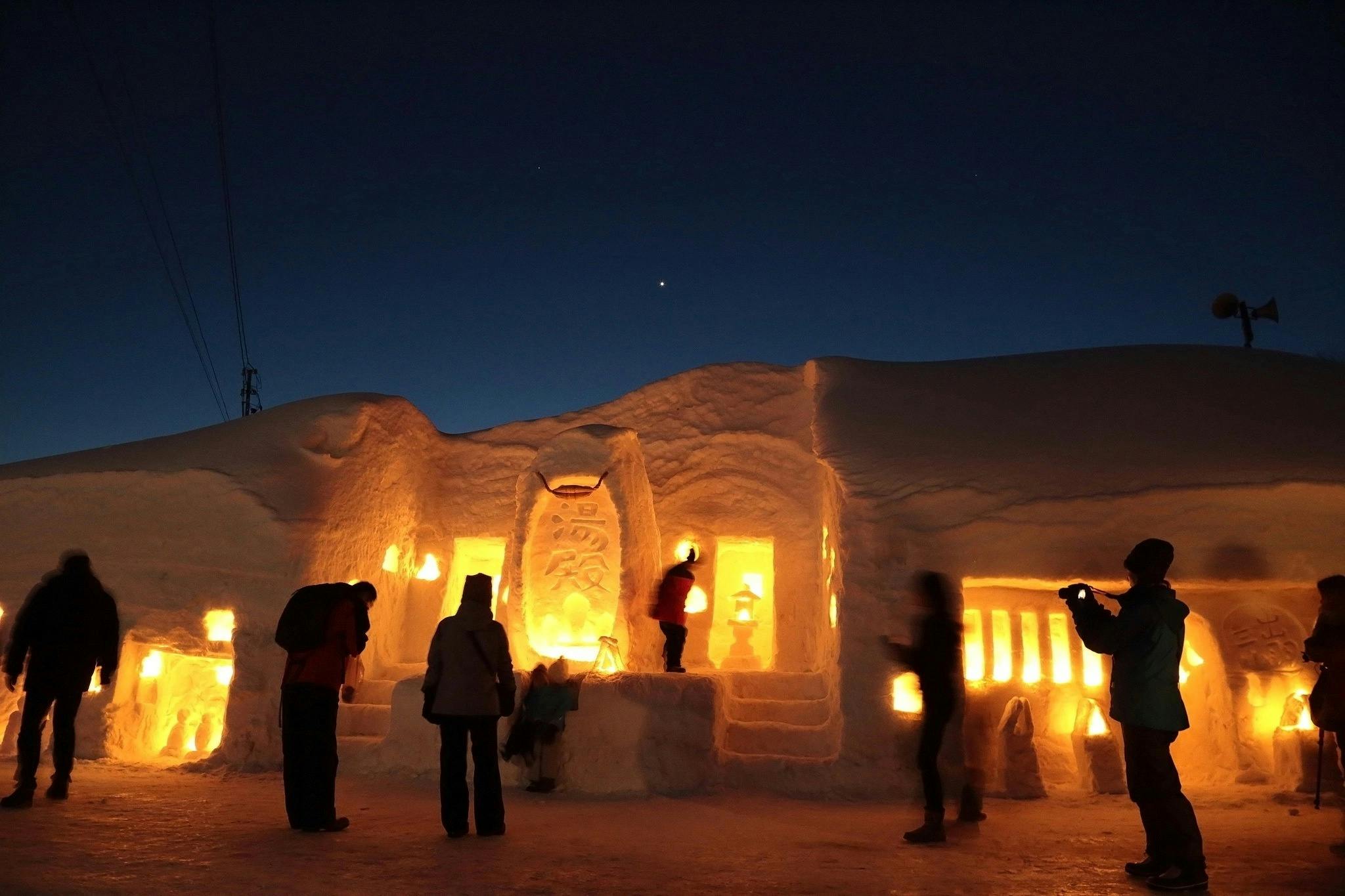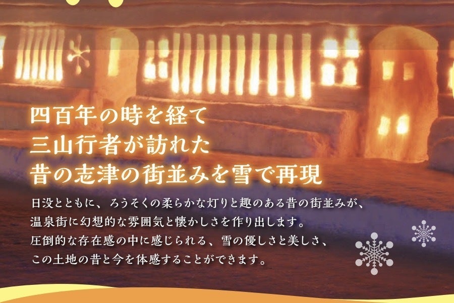 雪旅籠の灯りとは、三山信仰で古くから栄えた志津温泉の宿場町を雪で再現しています.